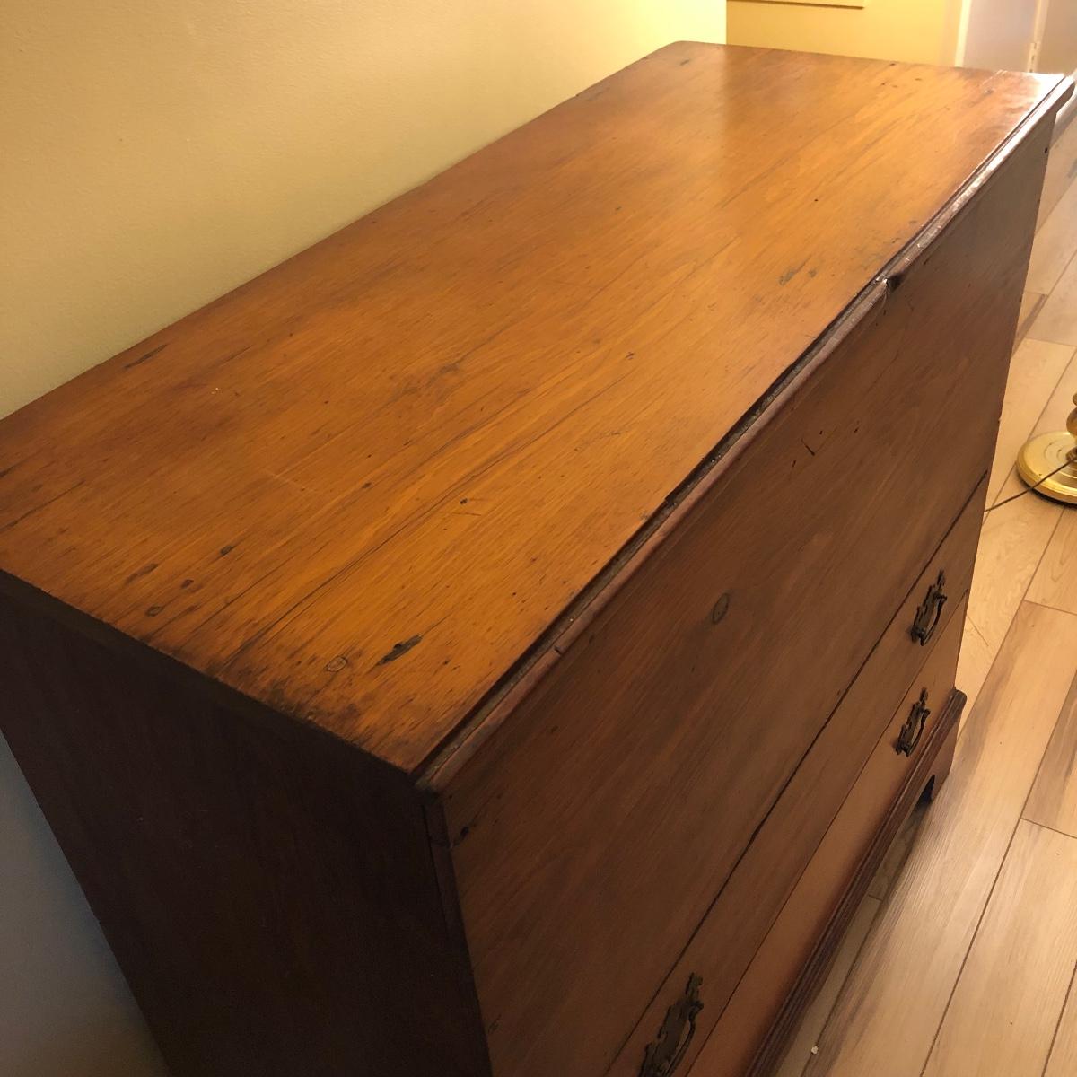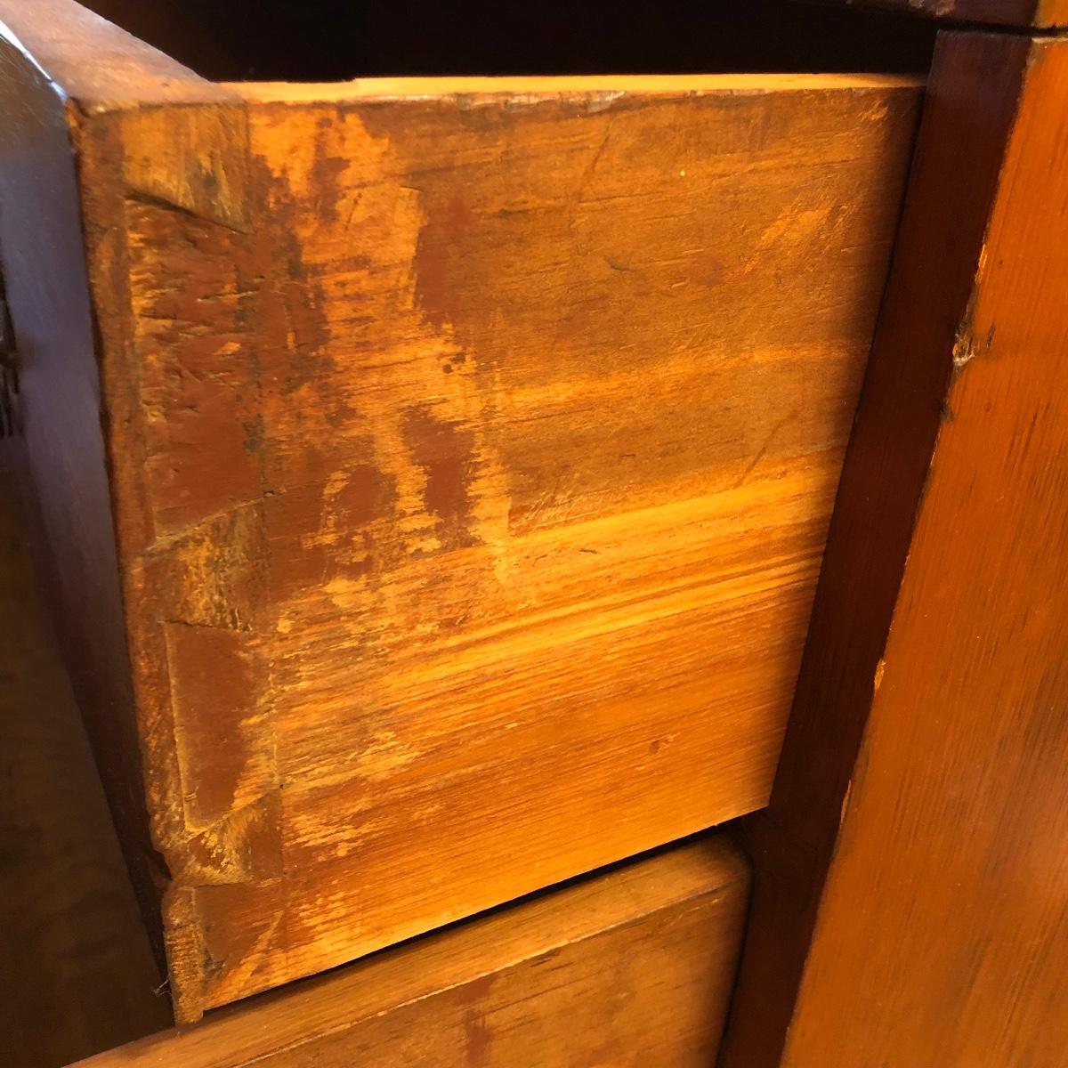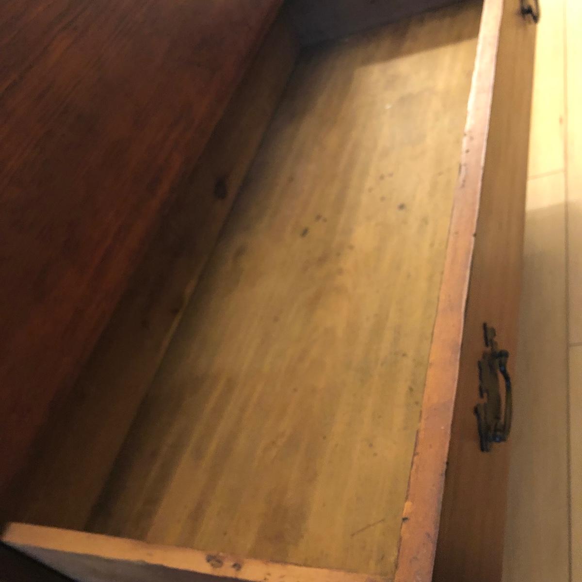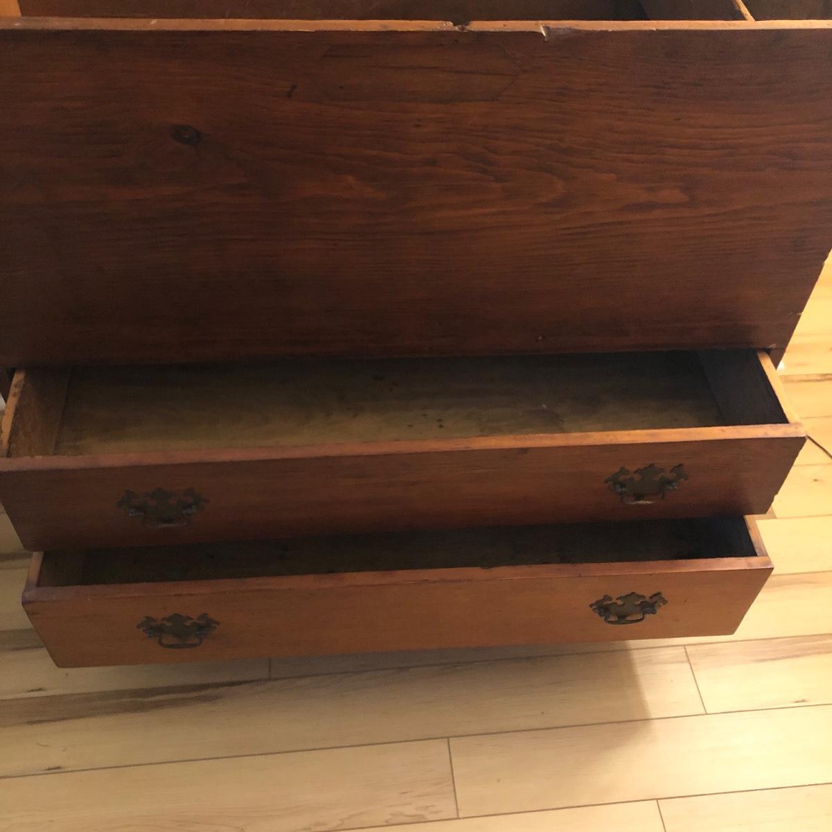 Lot includes a large chest with two dovetailed drawers at the bottom. Chest is in nice condition with just a few nicks and scratches and the top has a slight warp, see pictures. It’s a large size to hold lots of blankets or whatever you desire. Piece measures 18.5” x 43” x 42” and the upper chest is 17” deep. Bring help item is substantial.