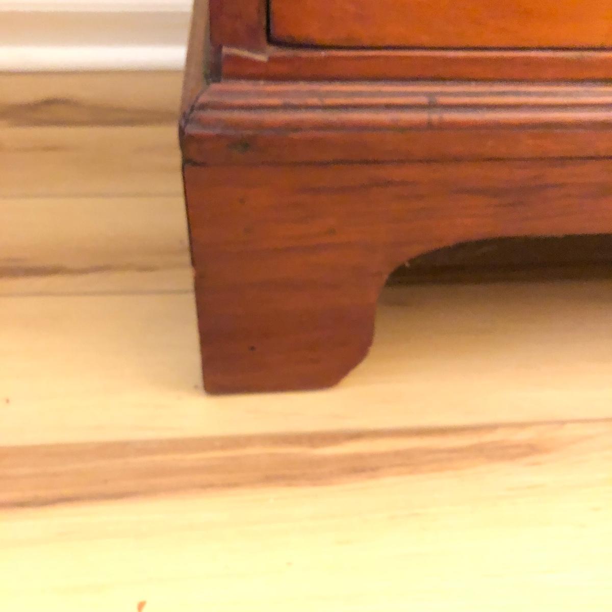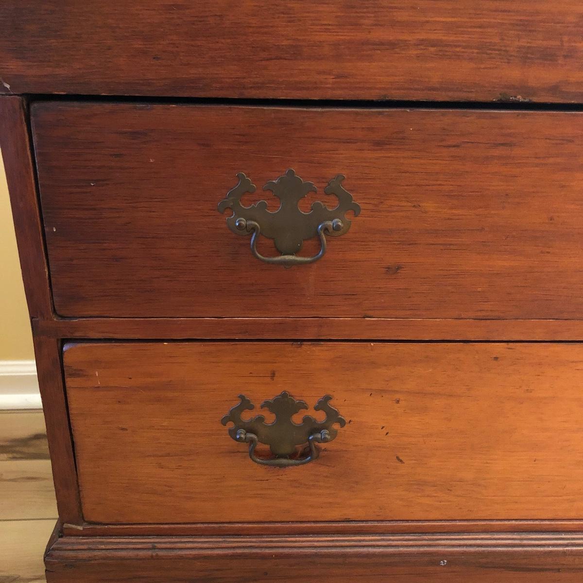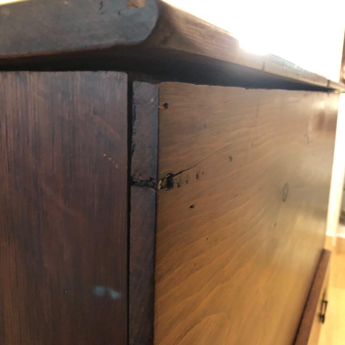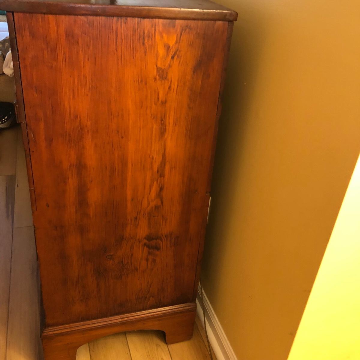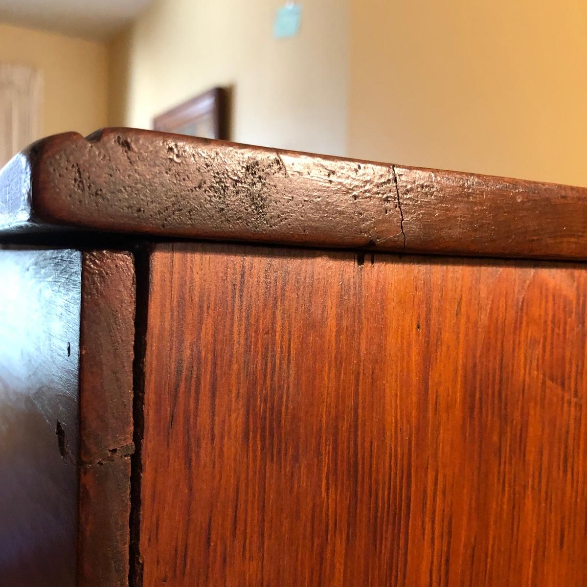Lot includes a large chest with two dovetailed drawers at the bottom. Chest is in nice condition with just a few nicks and scratches and the top has a slight warp, see pictures. It’s a large size to hold lots of blankets or whatever you desire. Piece measures 18.5” x 43” x 42” and the upper chest is 17” deep. Bring help item is substantial.