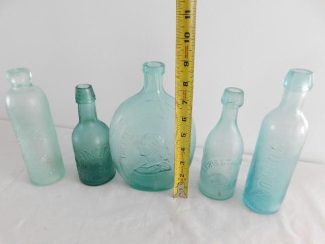Antique Blue Glass Elixir and Beverage Bottle