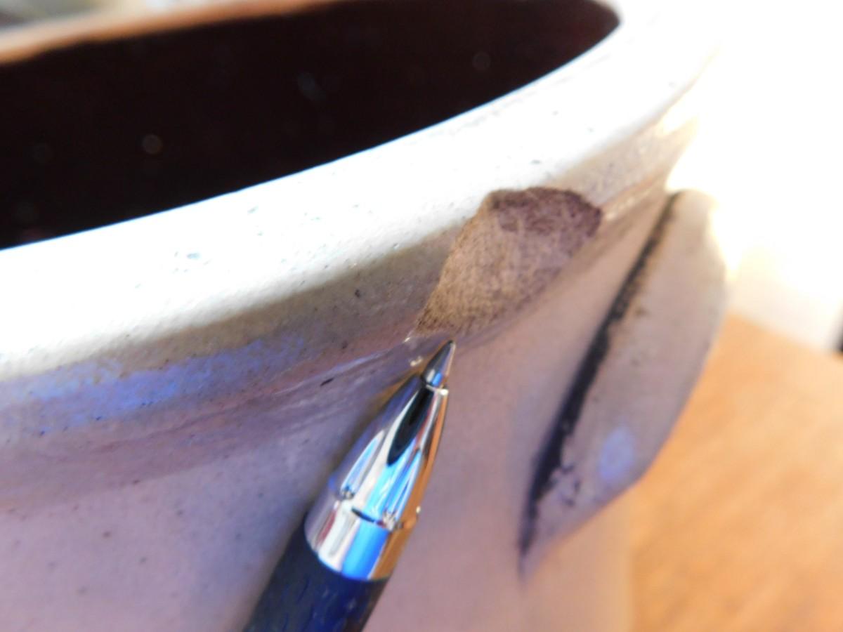 See close up photos for one very small chip....the rest looks nice but does show normal age/use wear.