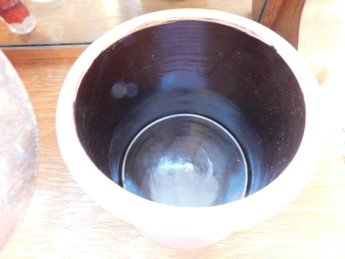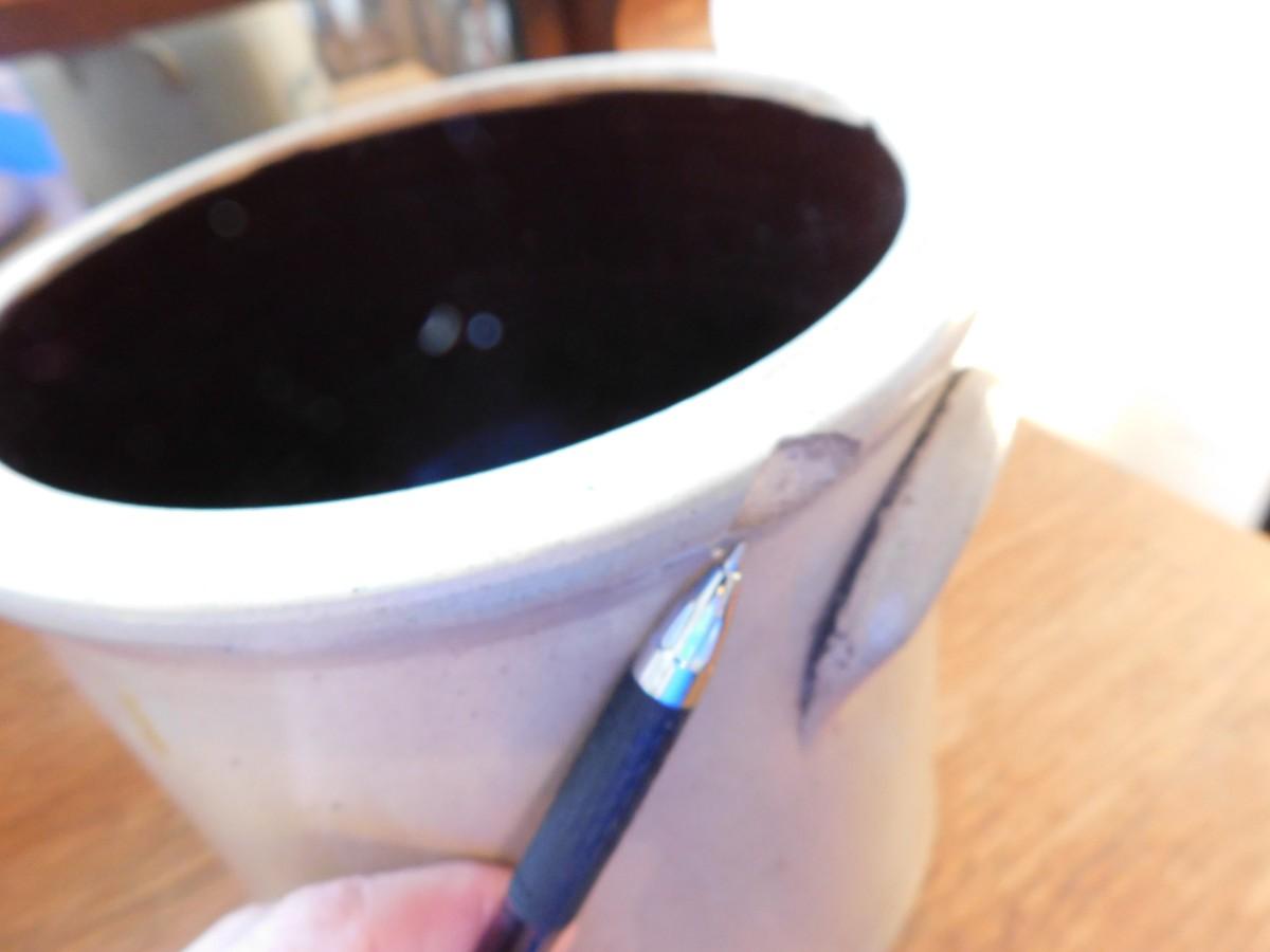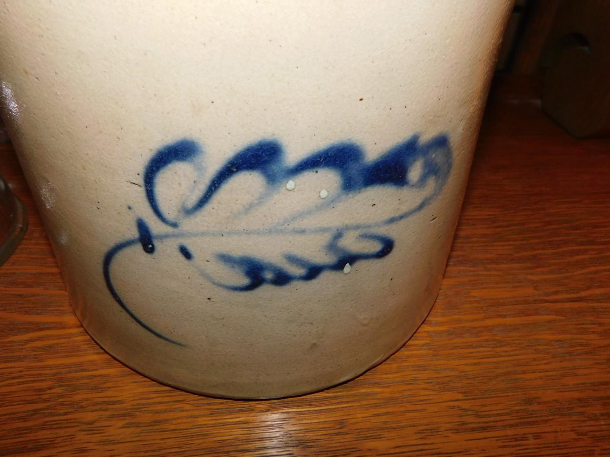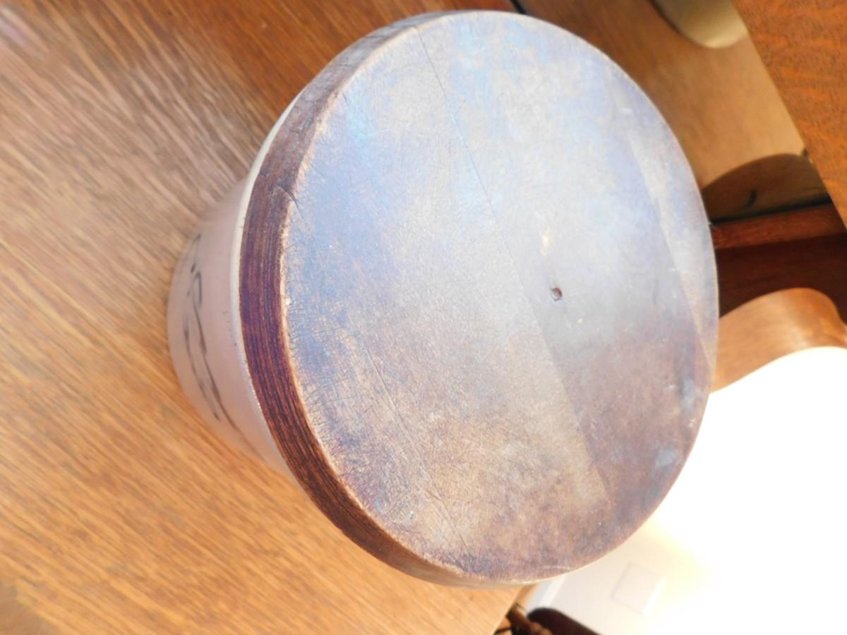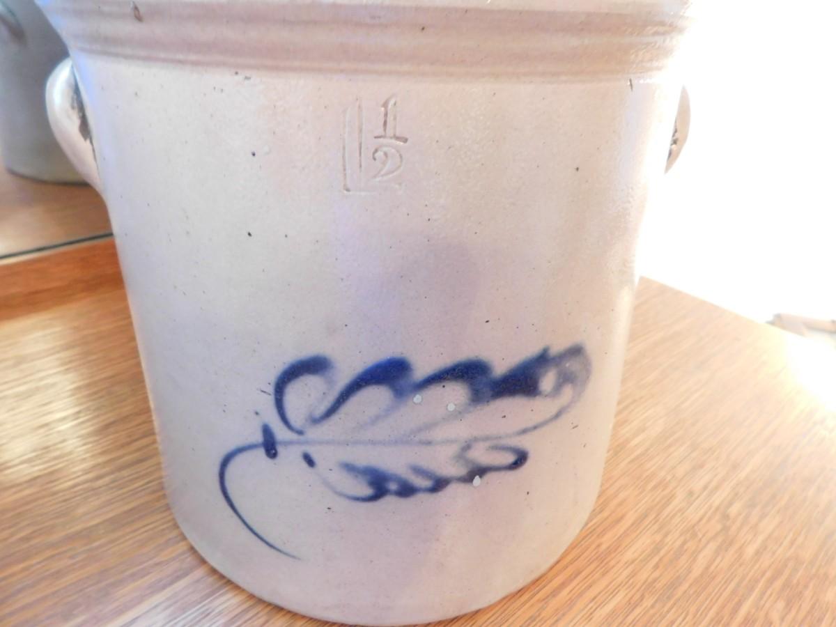 Antique Blue Glaze Stoneware 1.5 Gallon Crock With Wood Lid