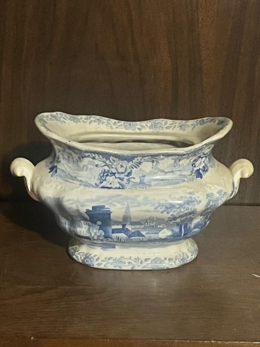 Antique Blue & White Transferware Ironstone Jardinière / Cachepot