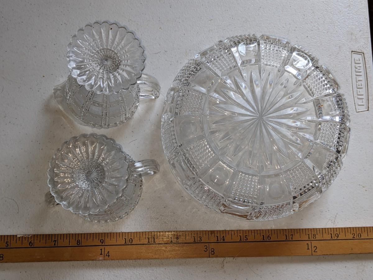 Antique Bohemian Crystal Geometric Design Clear Cut Glass