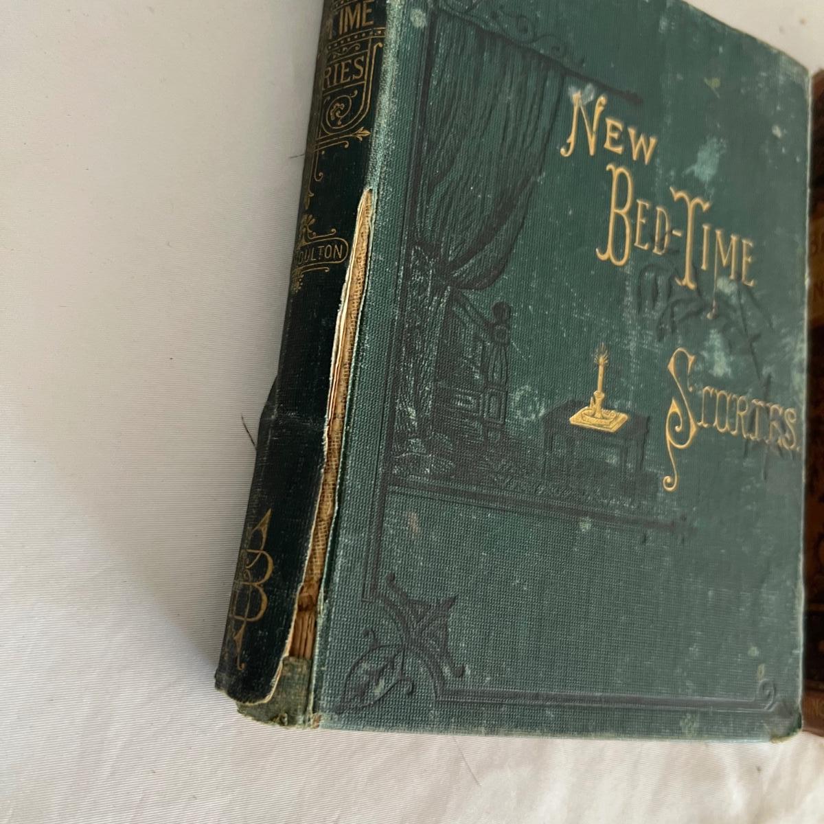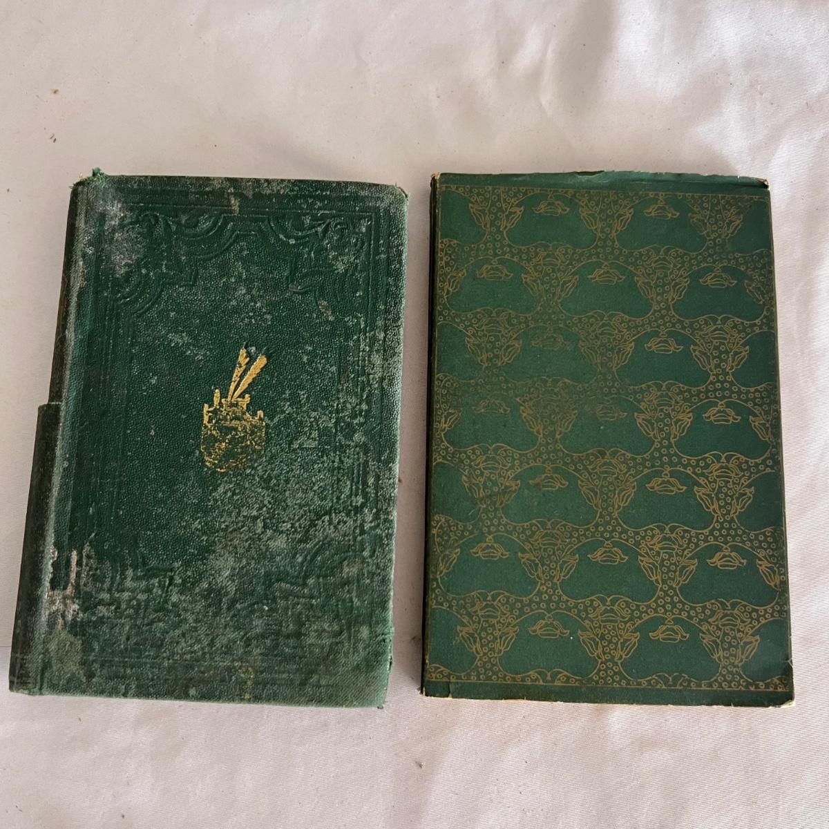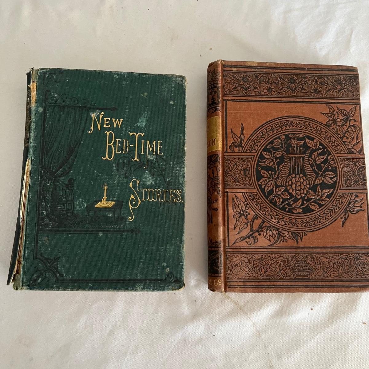 We have paired a brass (expandable) owl and pretty wood book ends with the prettiest of antique books. There are 13 books that all have condition issues such as stains and/or loose pages and spines. Approximately half of these books appear to be bound in leather. See images for titles and more information.