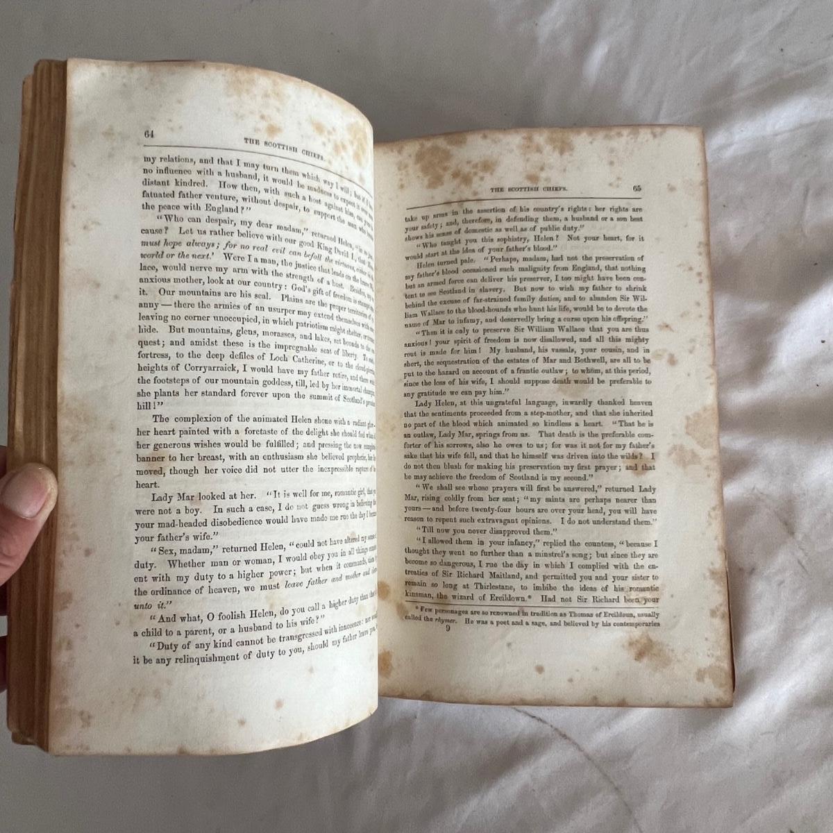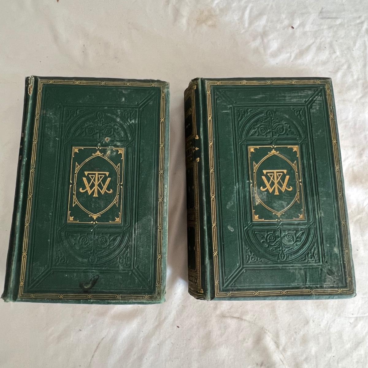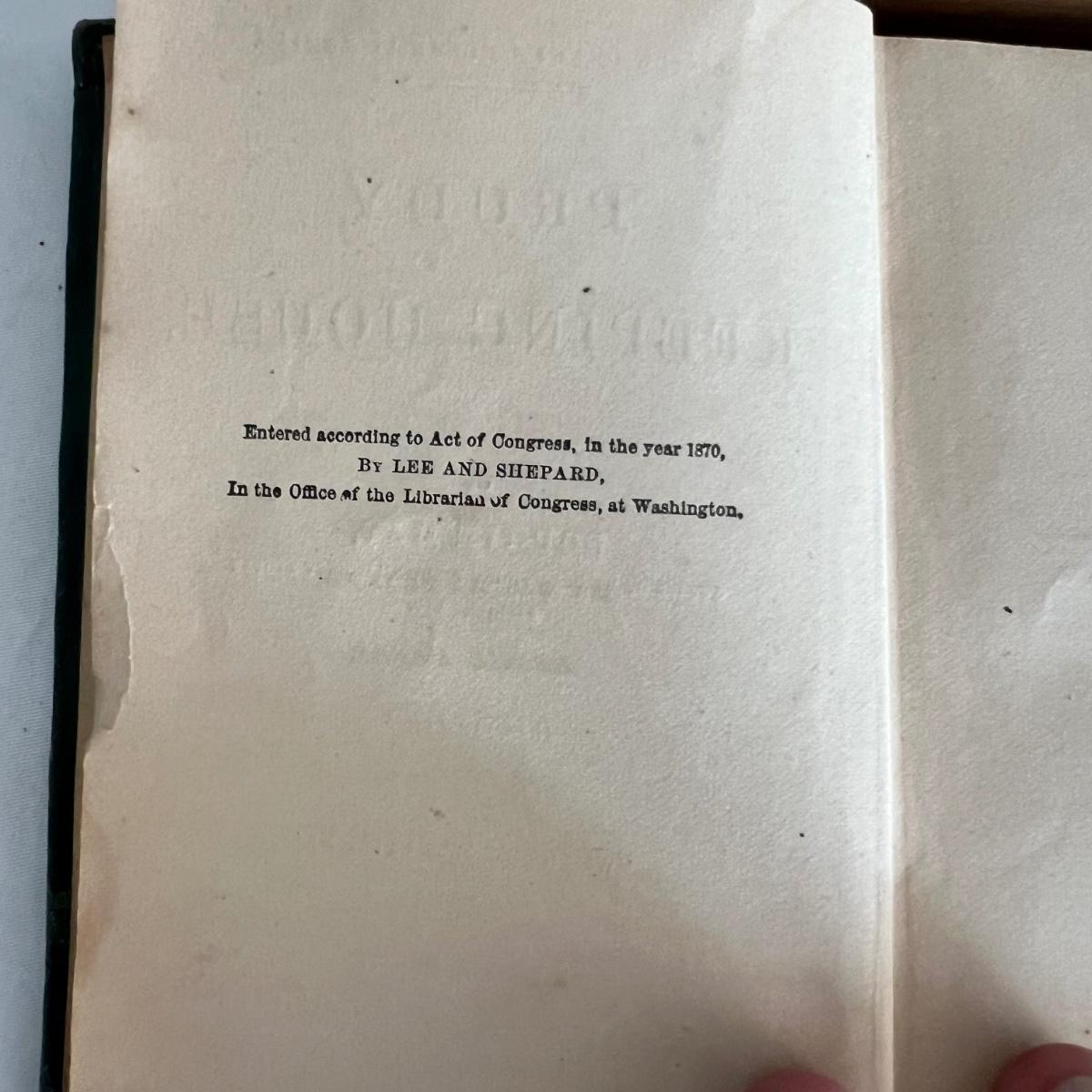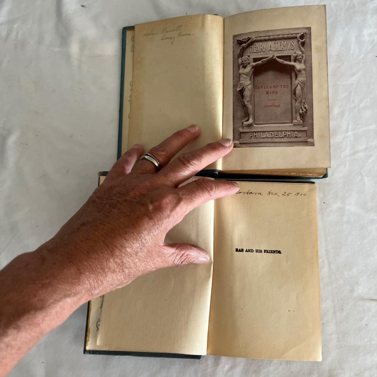 We have paired a brass (expandable) owl and pretty wood book ends with the prettiest of antique books. There are 13 books that all have condition issues such as stains and/or loose pages and spines. Approximately half of these books appear to be bound in leather. See images for titles and more information.