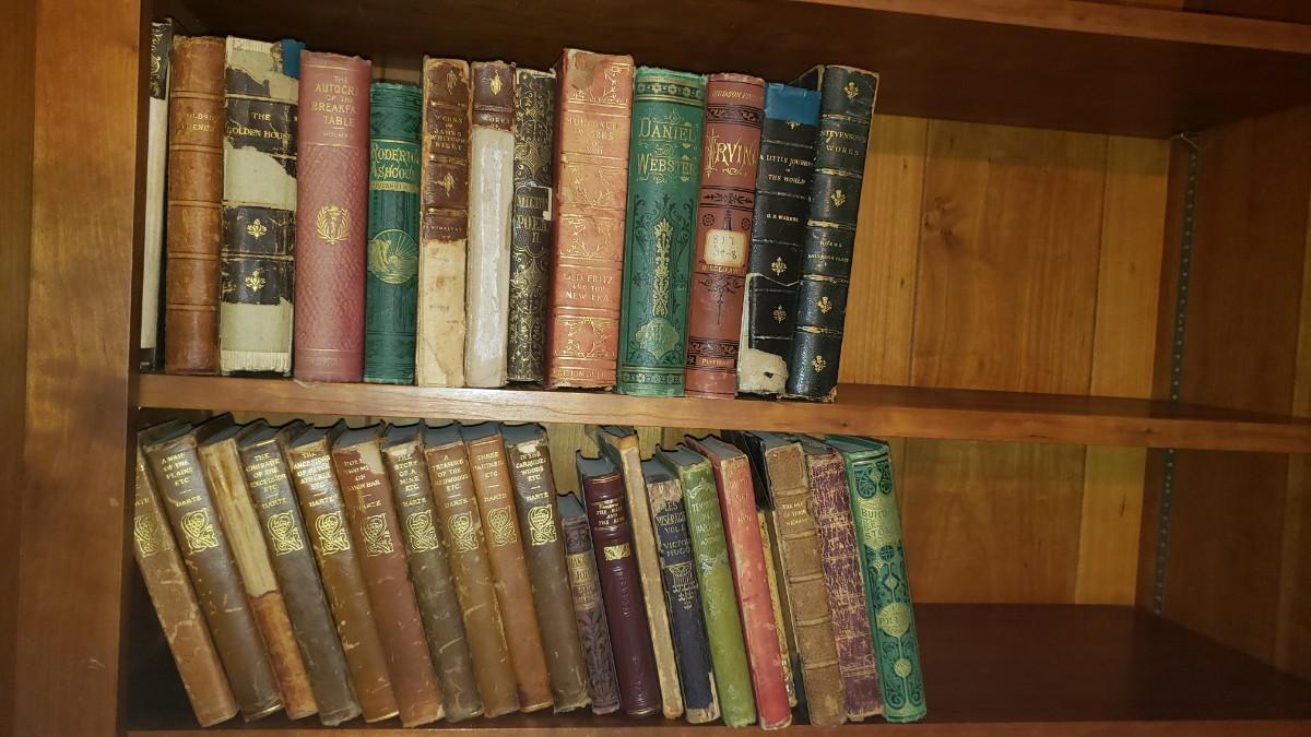 Antique books in various states of condition some have lost their covers but others are in very good shape
