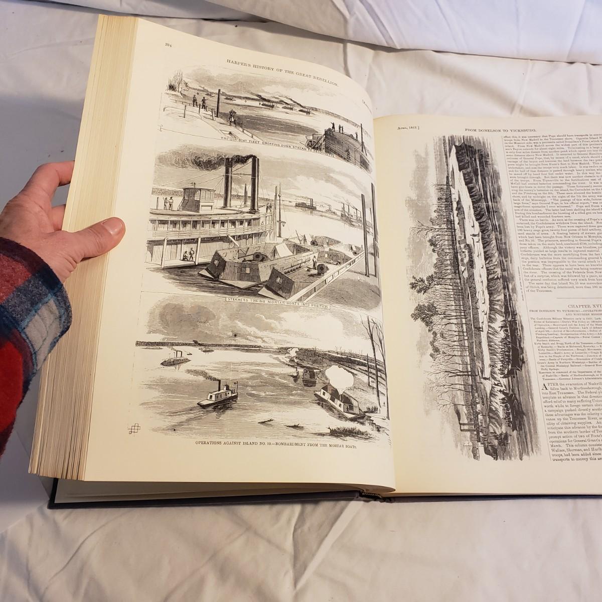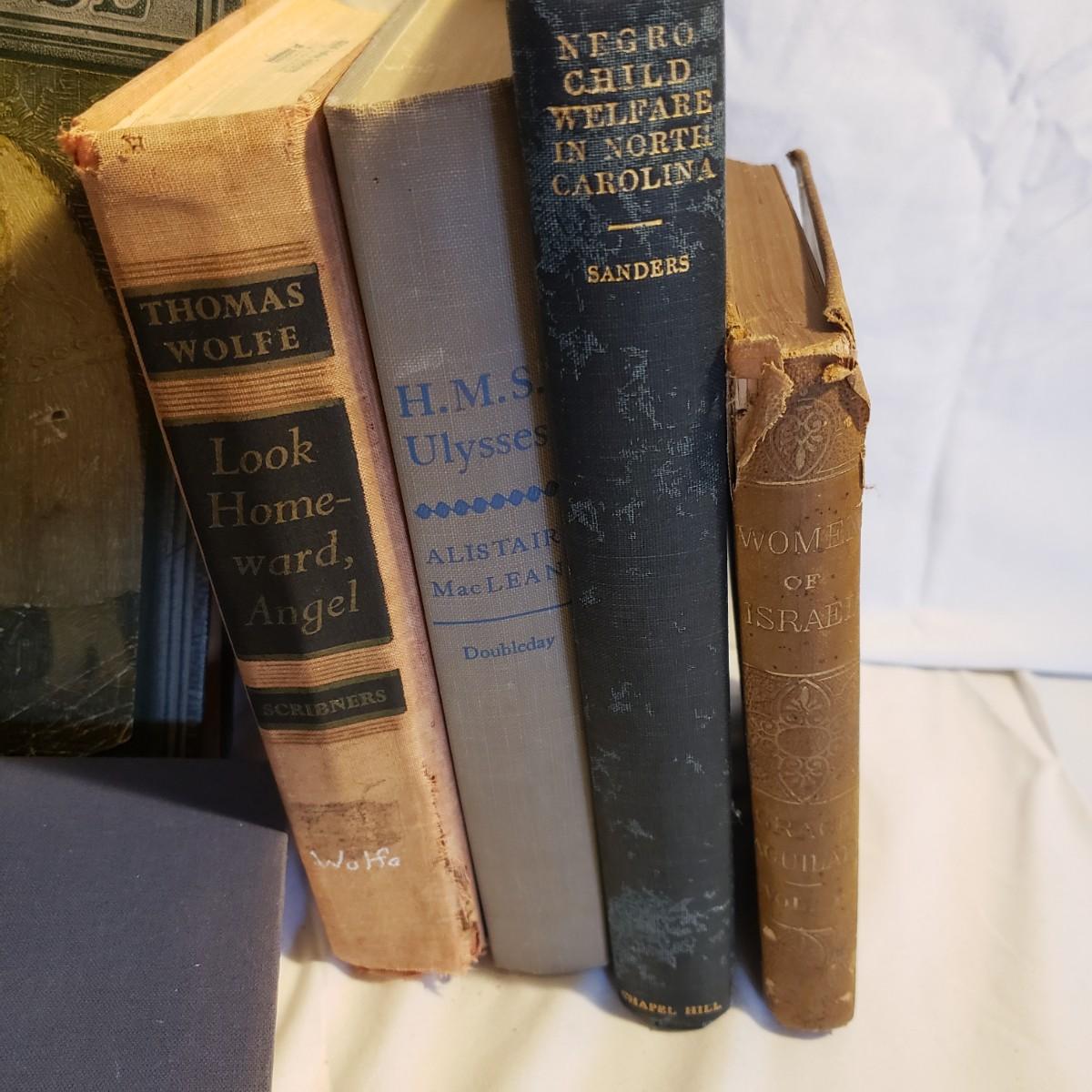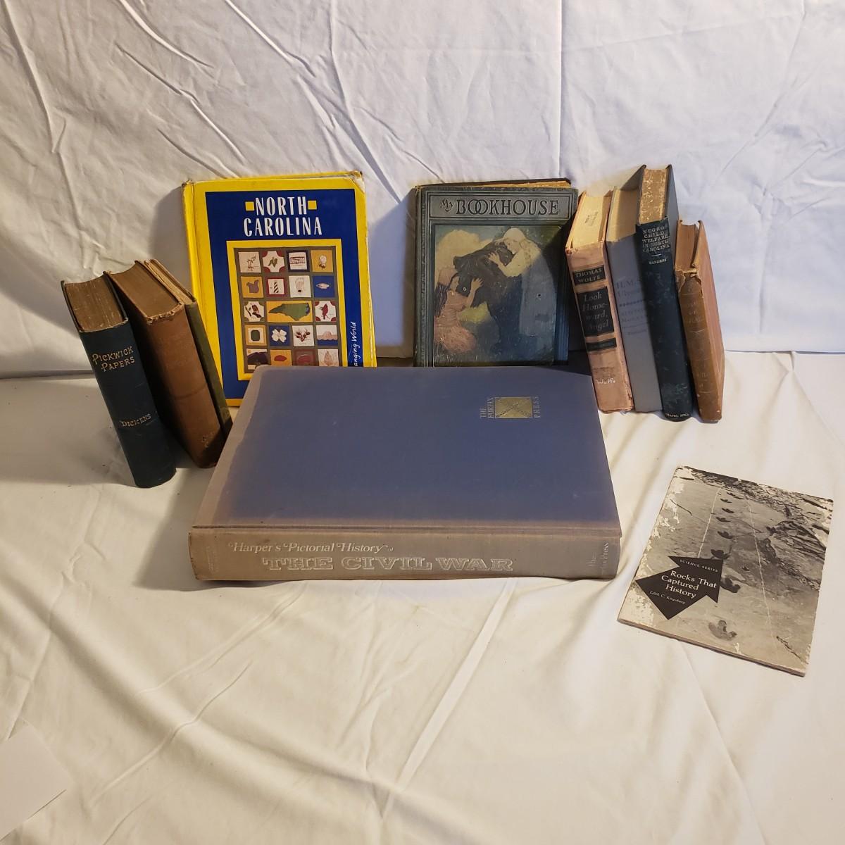 This antique book lot contains a wide variety of topics. See pictures for book details. The large Civil War book measures 14" x 11" x 2".
