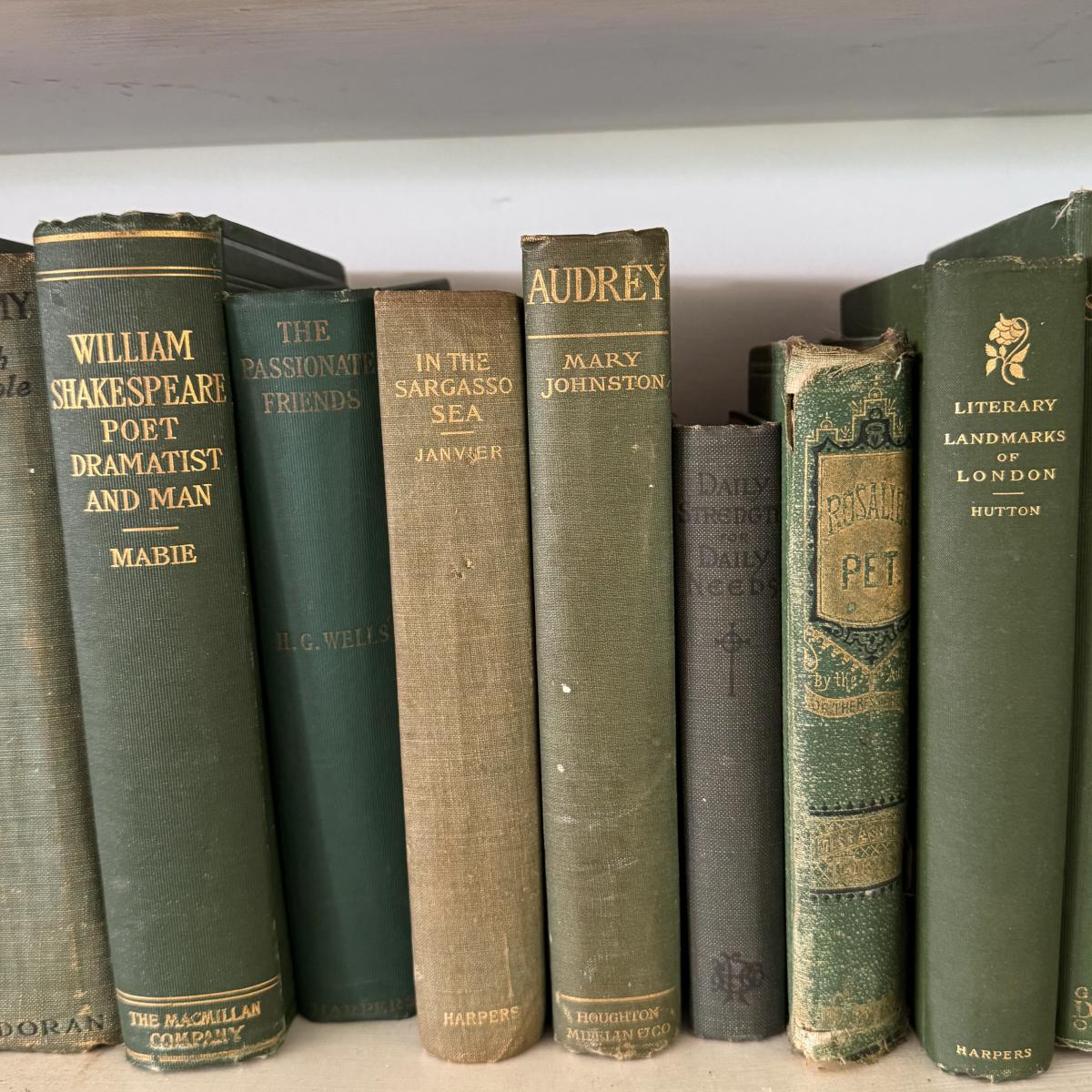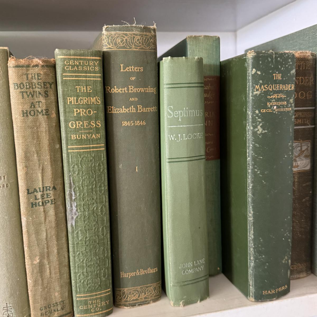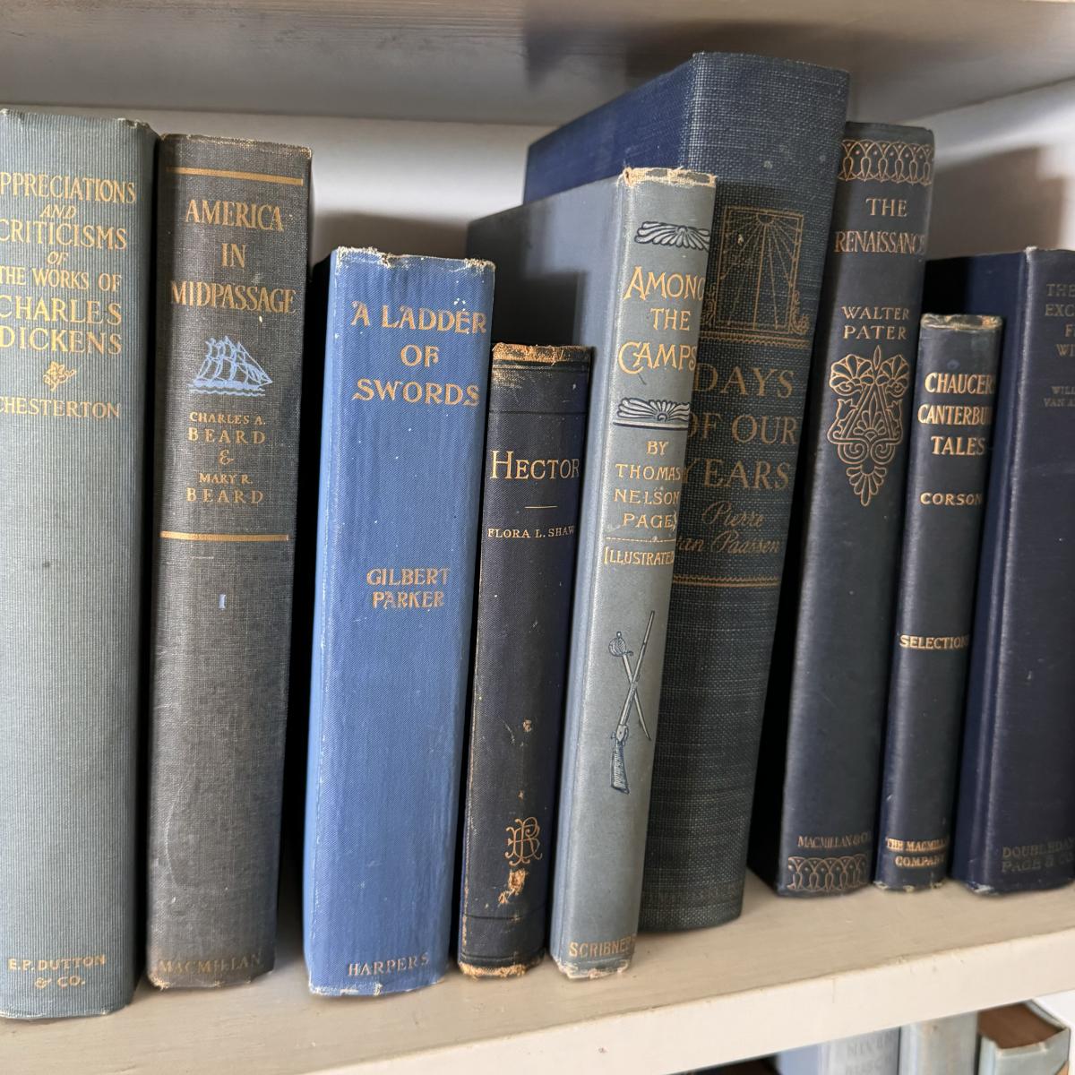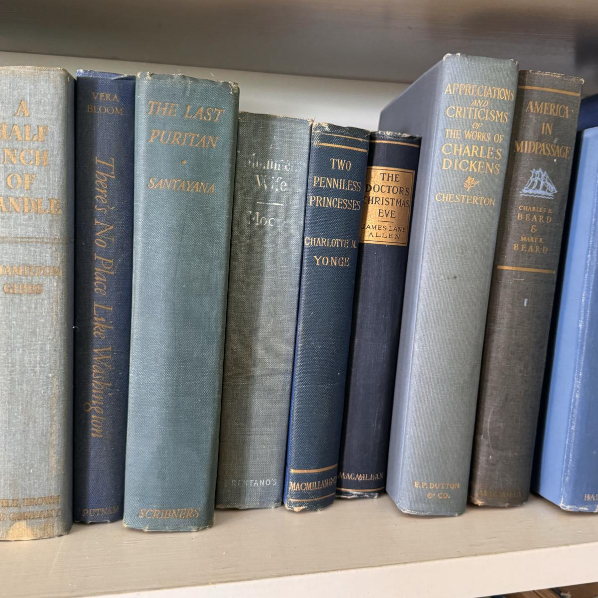 This lot includes over 100 antique and vintage books. All of the books have a blue or green toned spine and cover. You’ll find books dating back to the late 1800s. A sampling of copyright pages have been included in photos but if you want more information please schedule a preview appointment for September 16. Local pickup only.