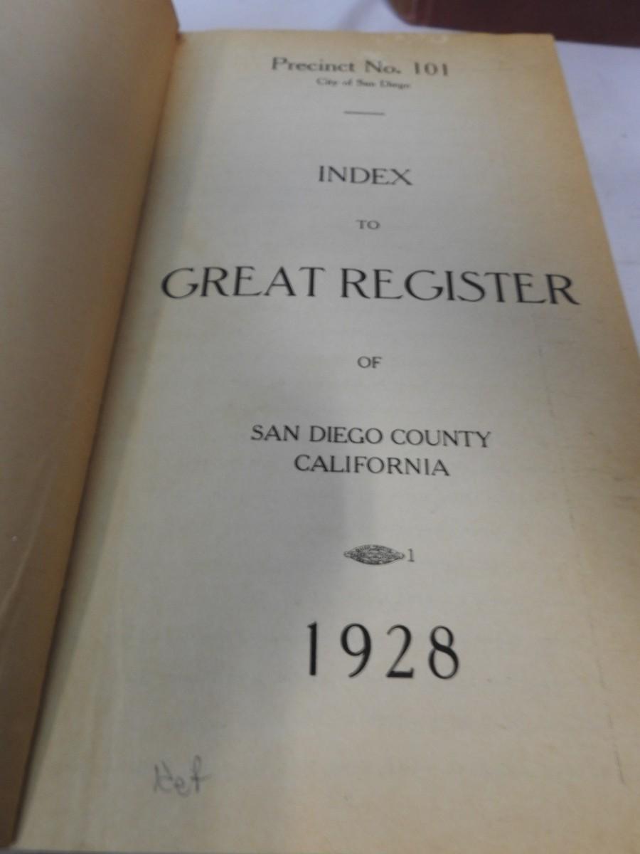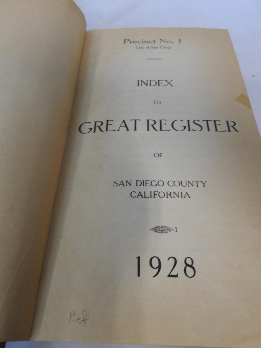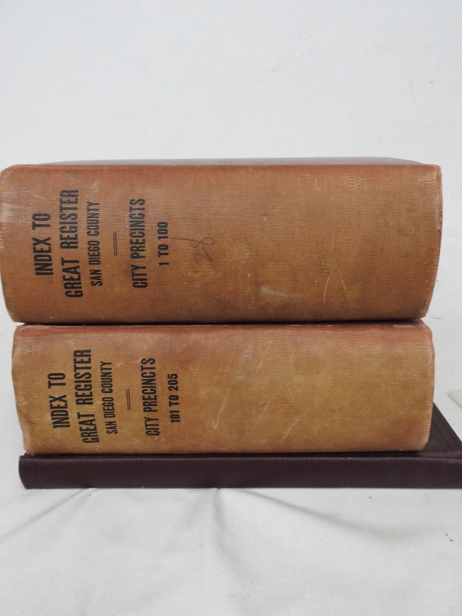 2 Antique Books: Index To Great Register San Diego Co, 1-Monitor Guide To Post Office & Railroad Stations