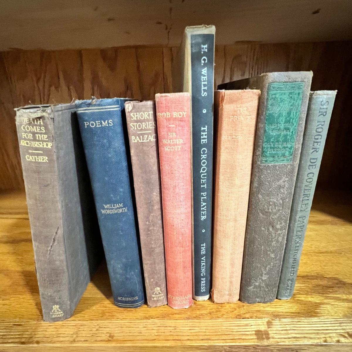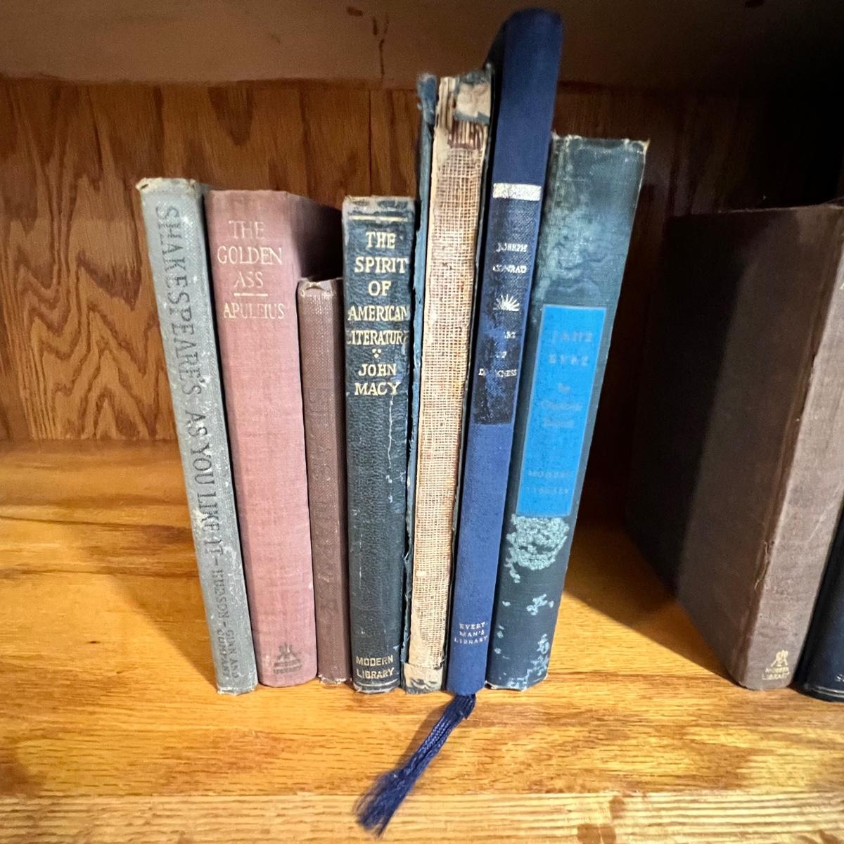 Wonderful assortment of approximately 20 very old books. See photos for titles and copyright. Most books are showing their age with issues with their spines and their overall condition plus most have been written in with pencil and/or pen. The box set has a gap so might be missing one book, see photo.