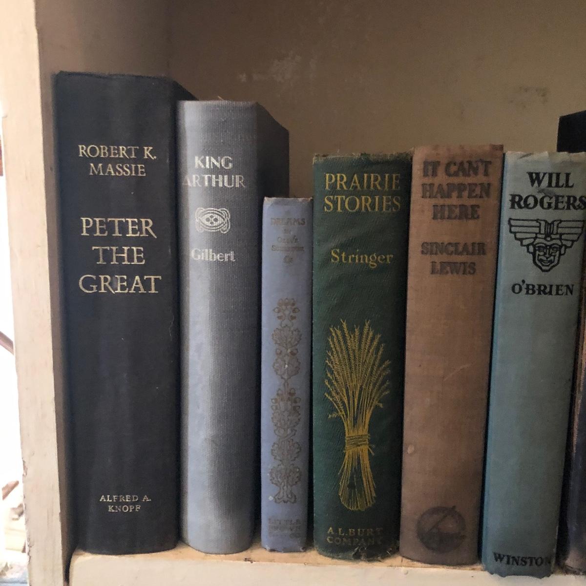 Lot contains antique books including books by Emily Post, John O’Hara, Irving Cobb, Robert Massie, Sinclair Lewis, Gerald Johnson and more.