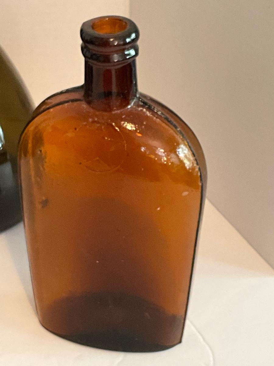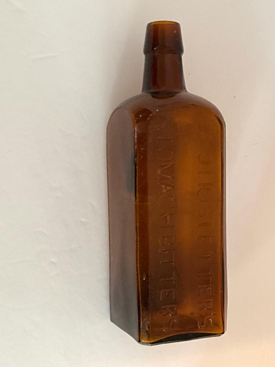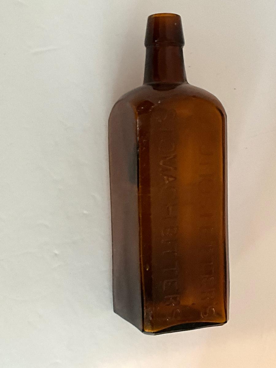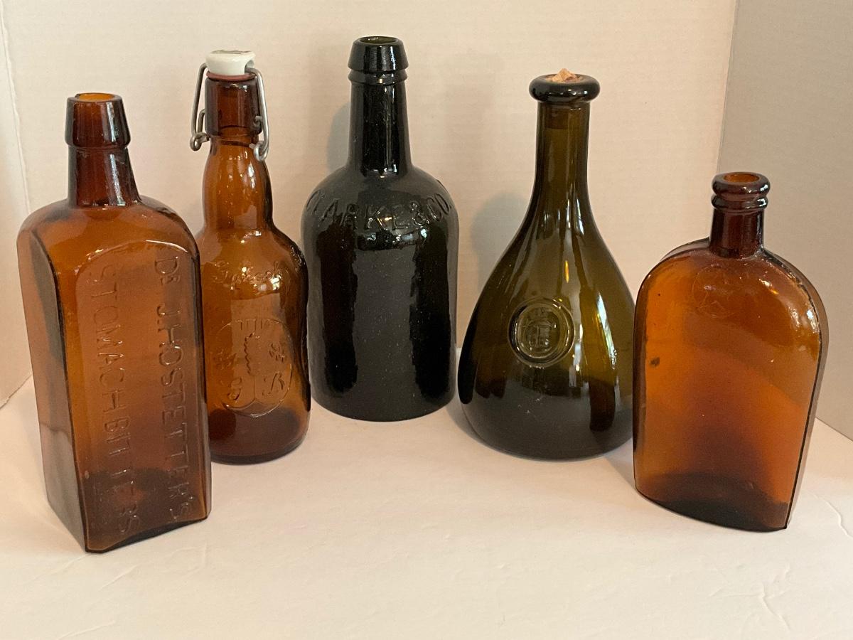 Antique Holme Gard Cherry Elfinore bottle decanter, Clark & Co. NY bottle, Grolsoh Fla Bottle, Hostetter Stomach Bitters Bottle (chipped), Antique star stamped pint as pictured