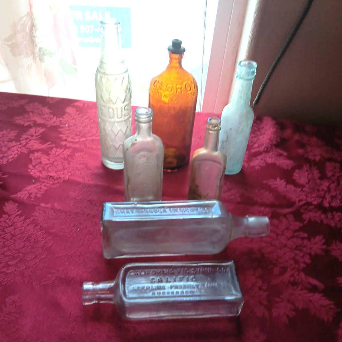 ANTIQUE BOTTLES MOST WITH RAISED LETTERING