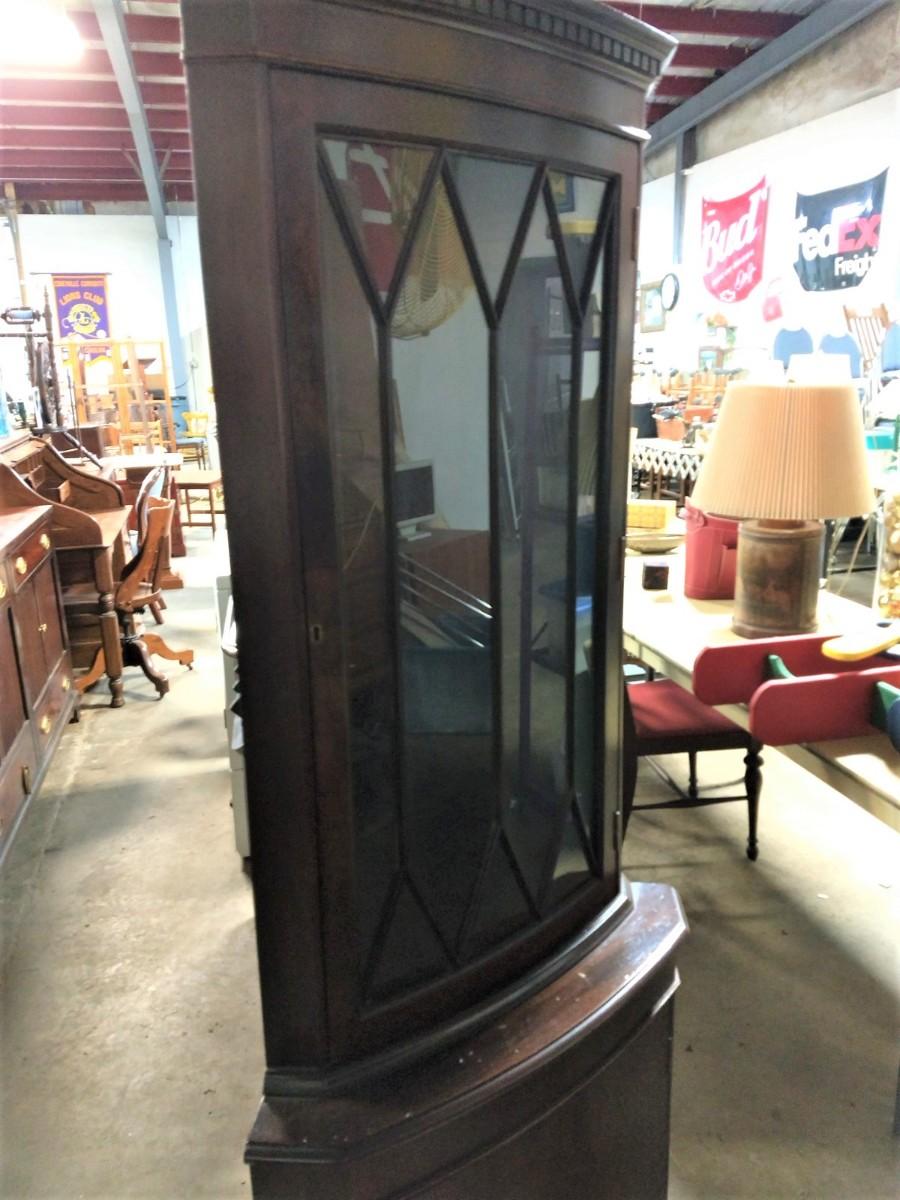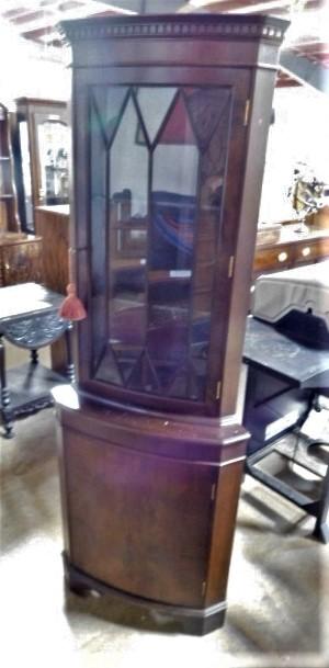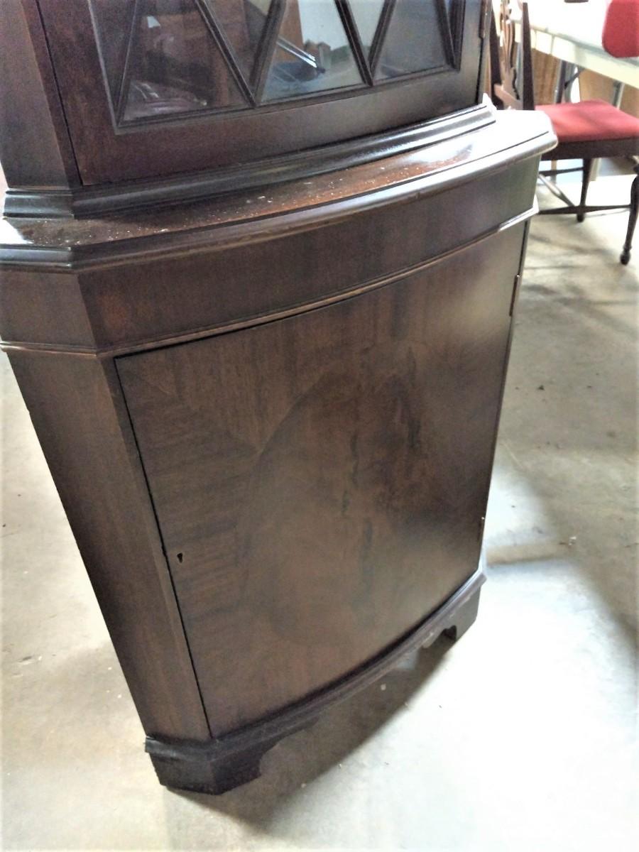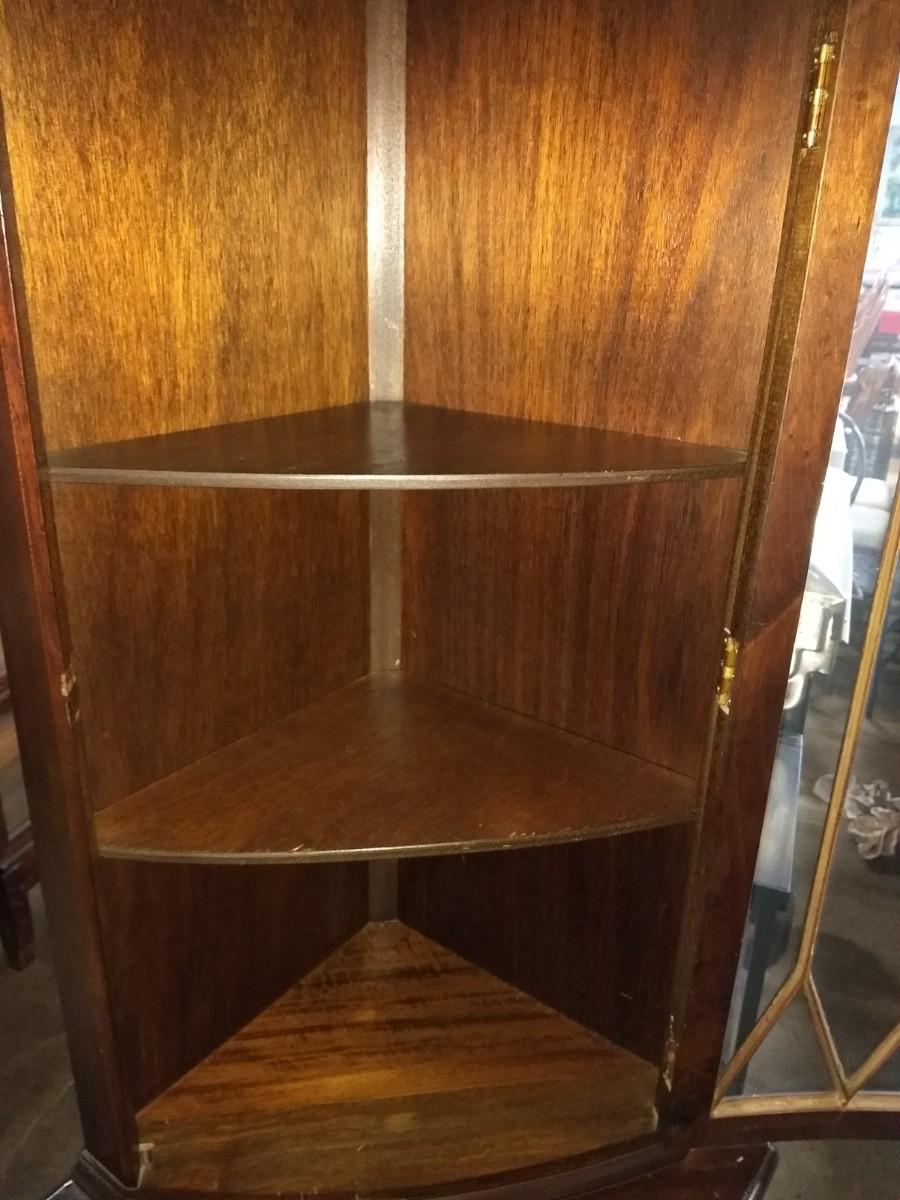 Antique Bow Front Corner Hutch Display with Glass Door and Nice Fretting