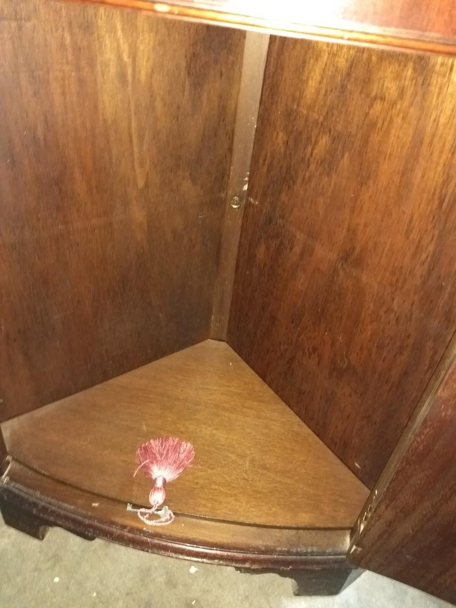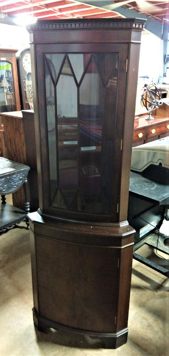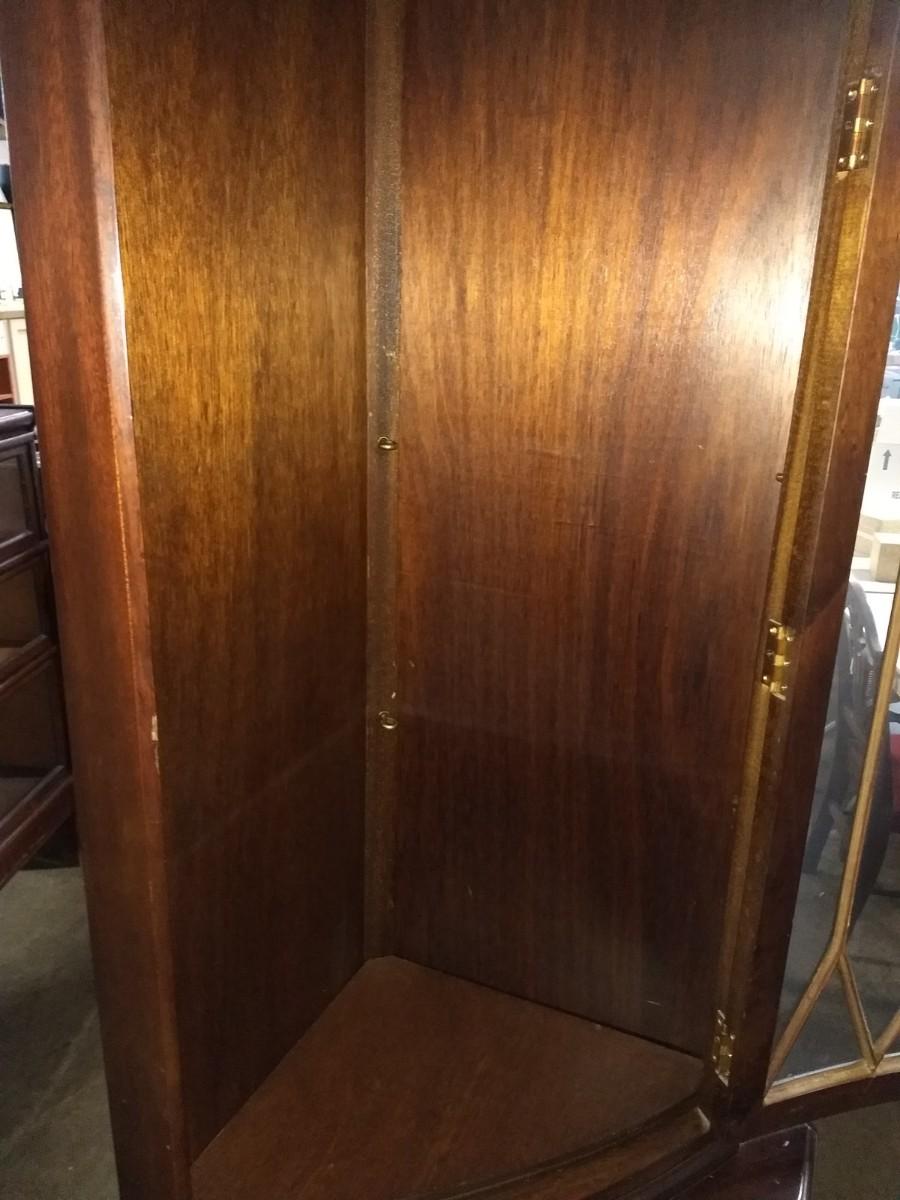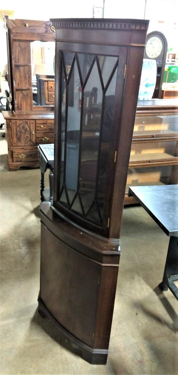 Antique Bow Front Corner Hutch Display with Glass Door and Nice Fretting