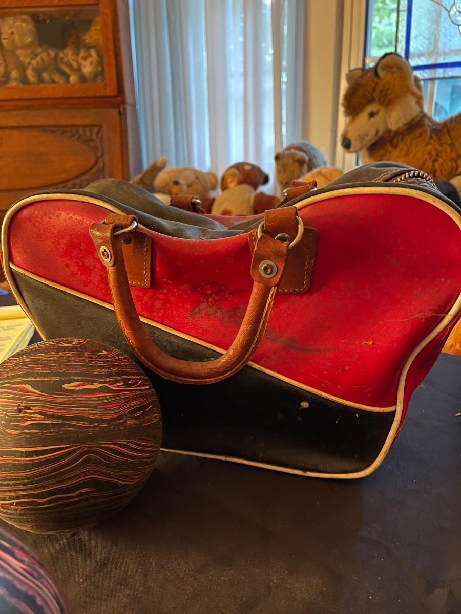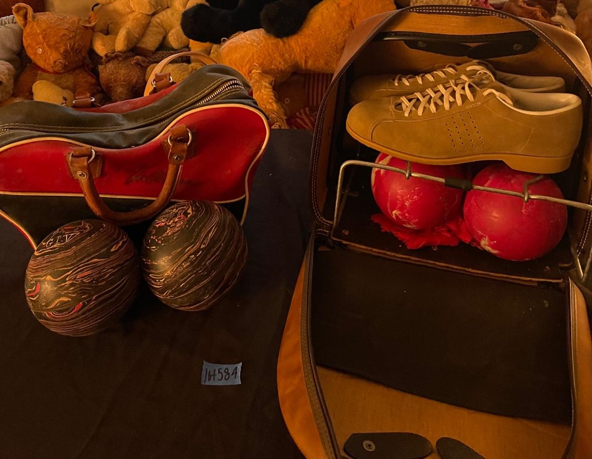 *2 Antique Sets of Mini Bowling Balls w/ cases and mens shoes, size 10, made in USA.