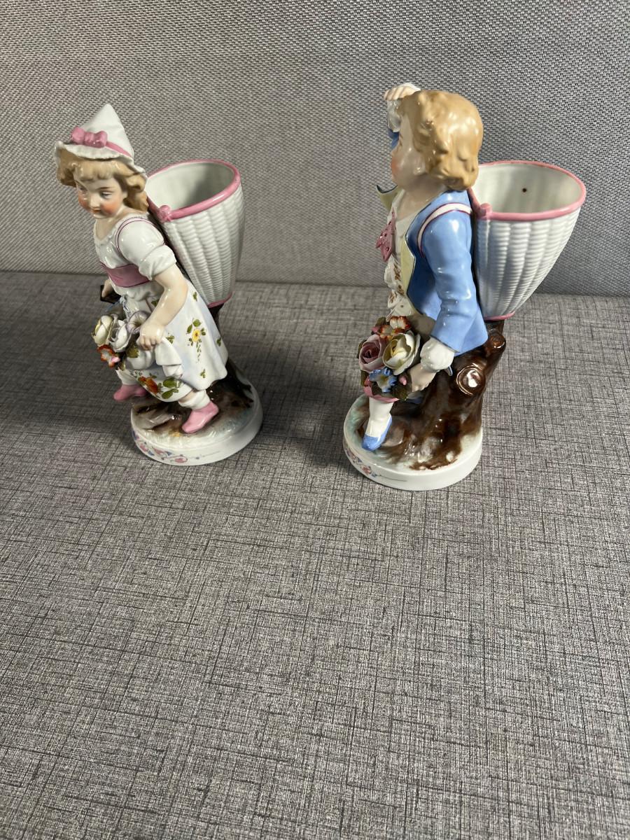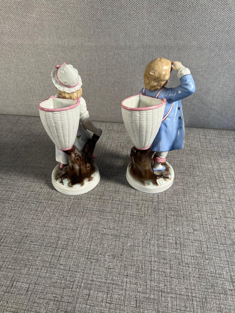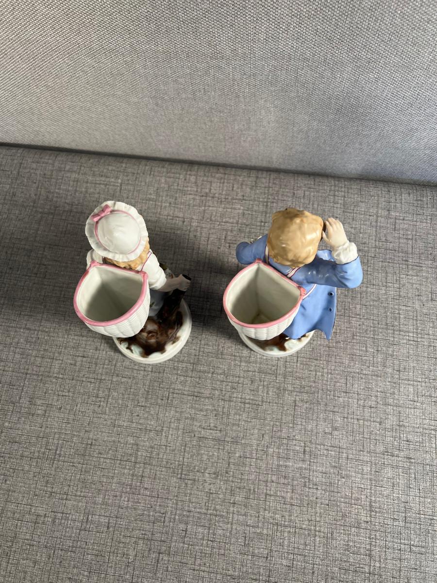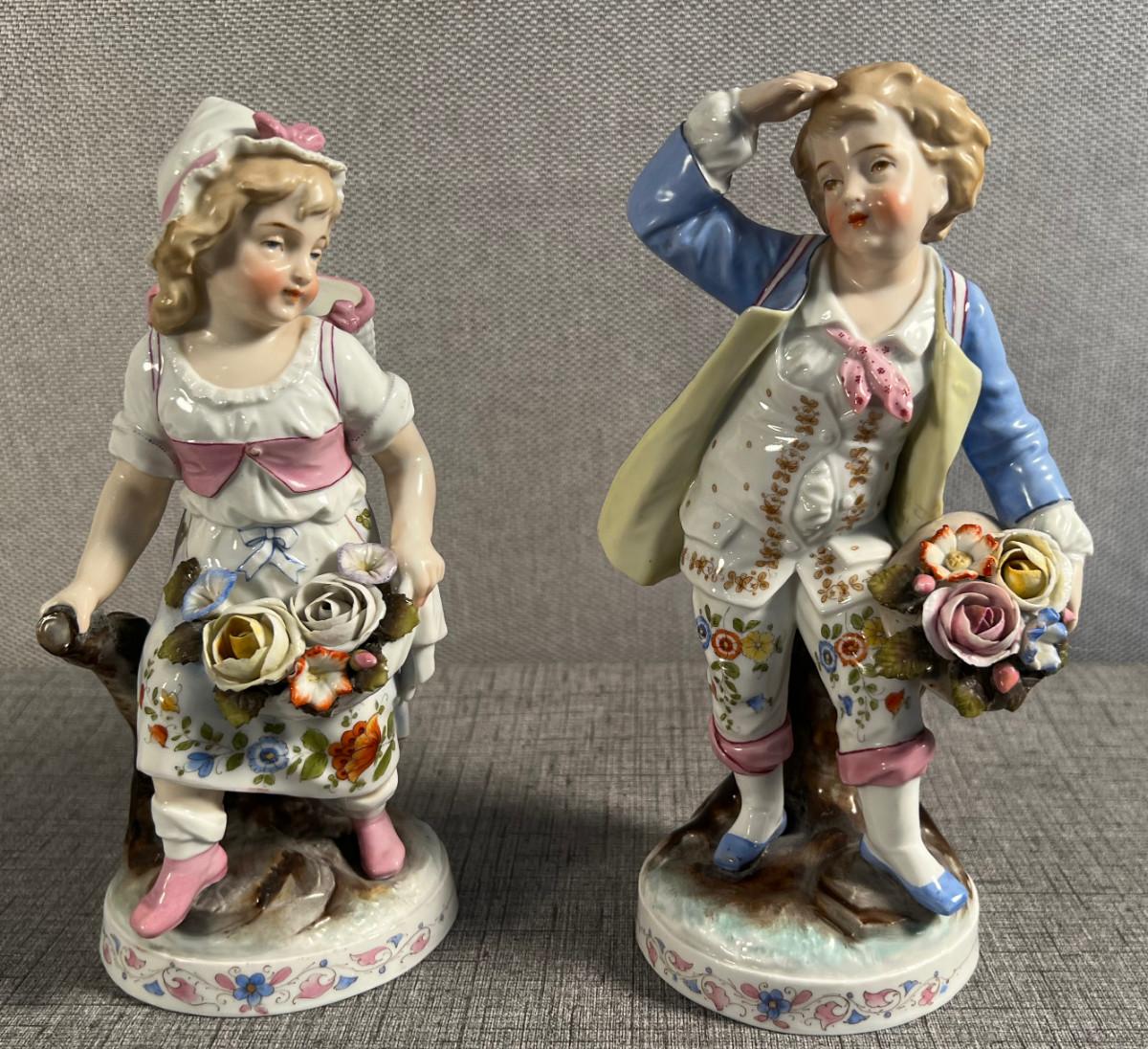 Antique Boy and Girl w/Baskets Figurine German Bisque Porcelain