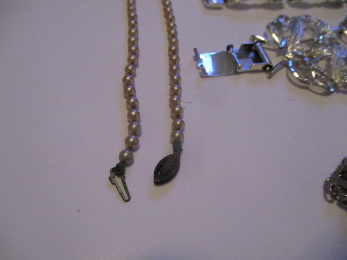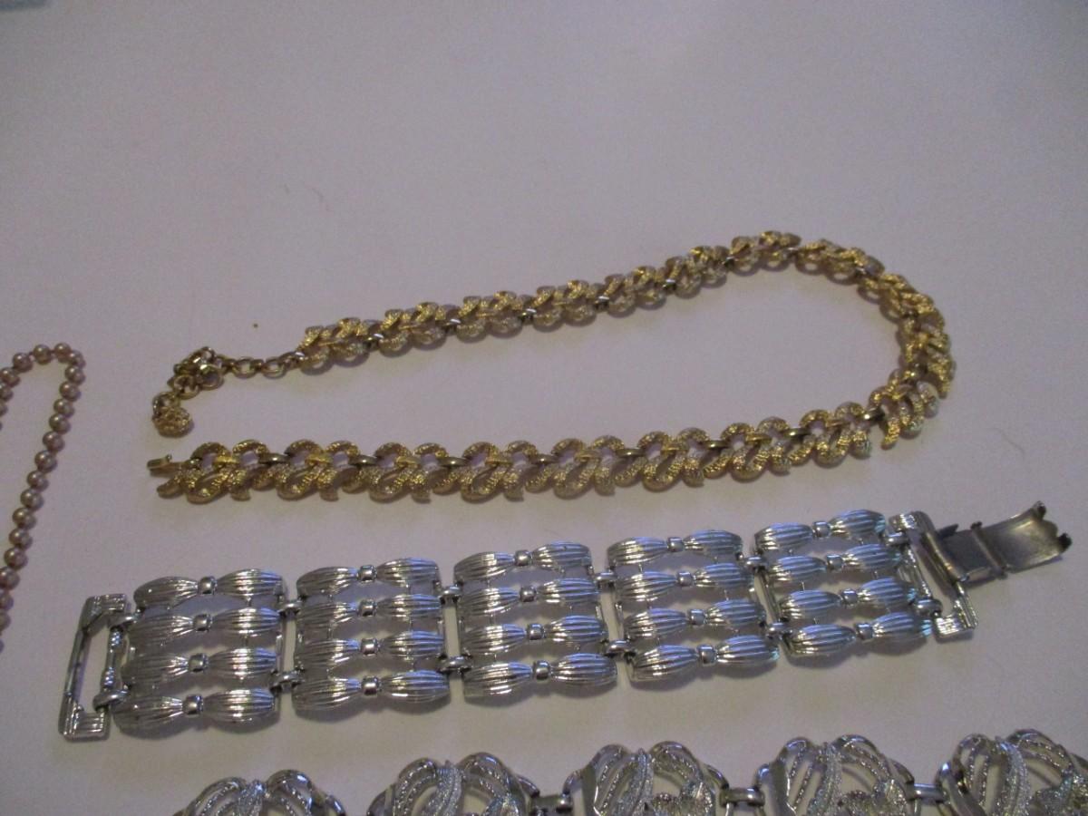 Antique Bracelets & Necklaces (1) Monet Gold Tone Signed & (1) Signed Coro Pegasus Blue Confetti Bracelet