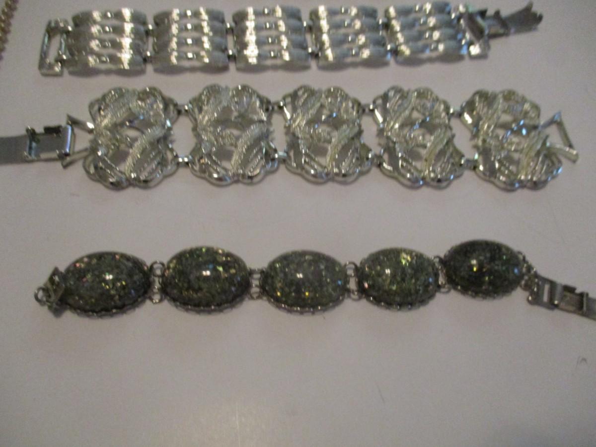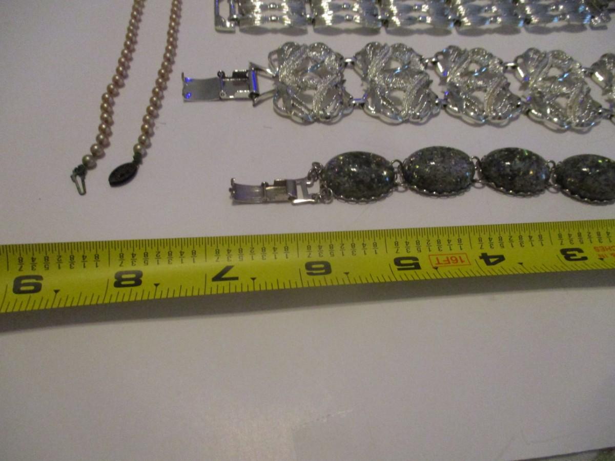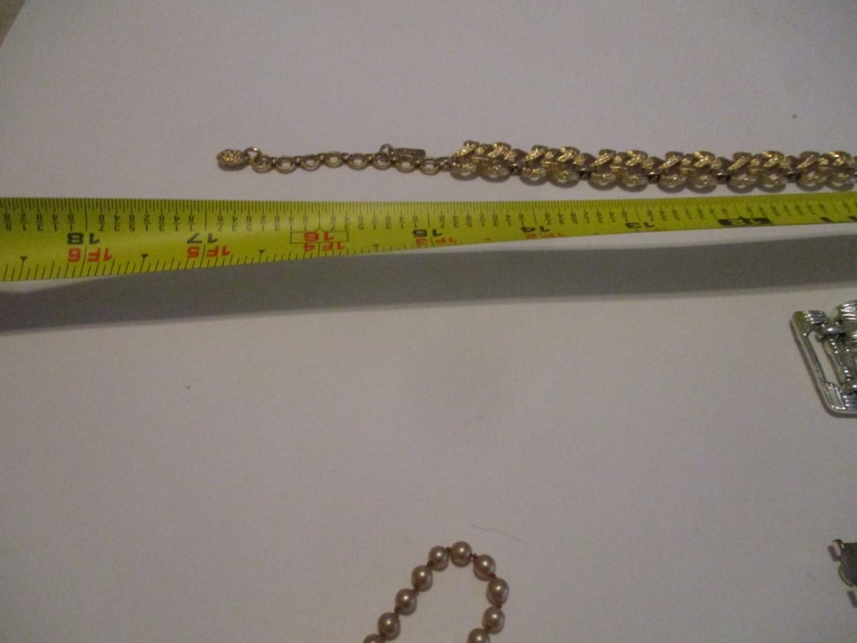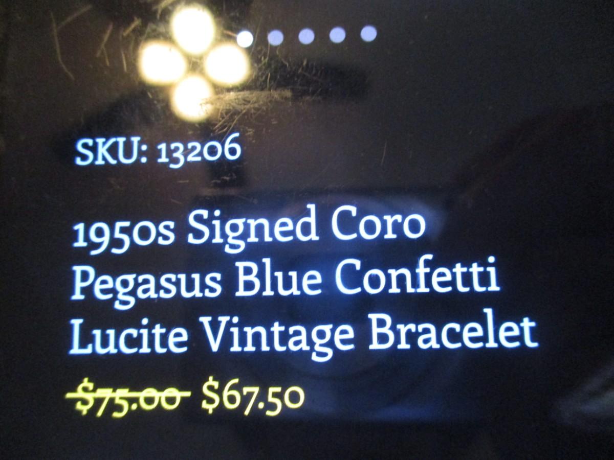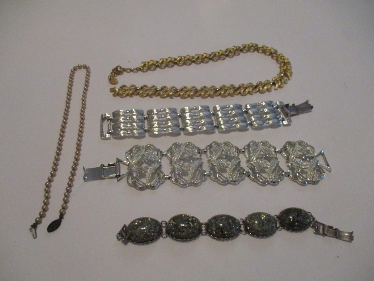 Antique Bracelets & Necklaces (1) Monet Gold Tone Signed & (1) Signed Coro Pegasus Blue Confetti Bracelet #43