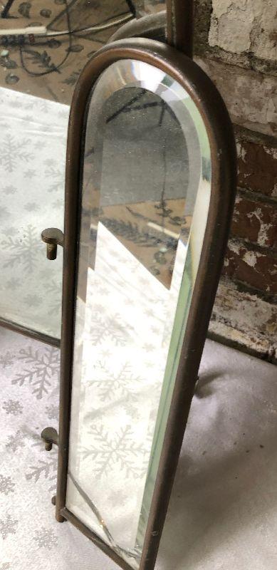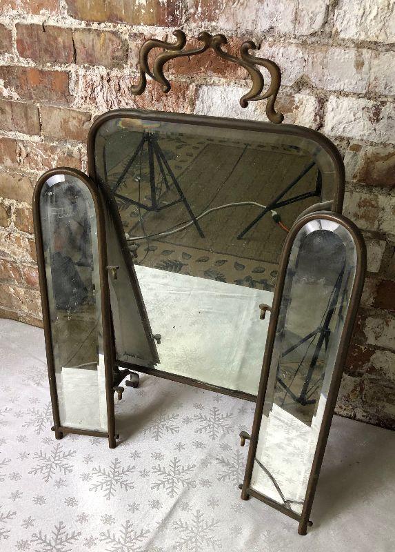 Here is an antique brass 3-panel mirror panel..as shown..detached trim...Art Nouveau style...22 x 27"...