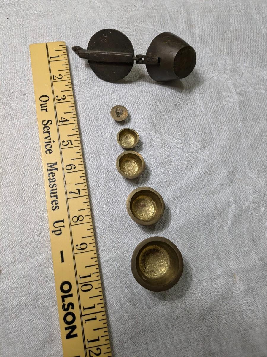 ANTIQUE BRASS APOTHECARY NESTING CUP WEIGHTS