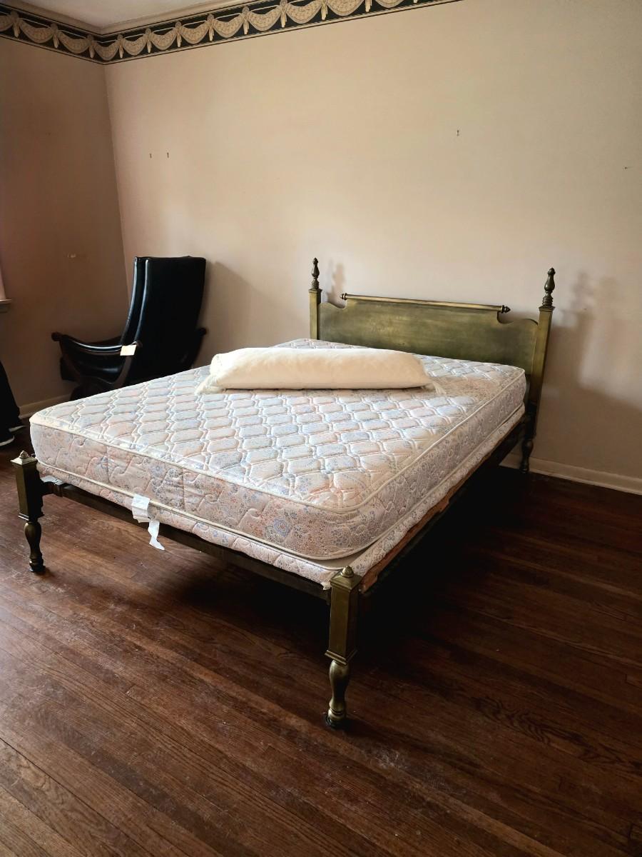 This bed is heavy. Buyer is responsible for disassembling and moving it. The black office chair is not included.