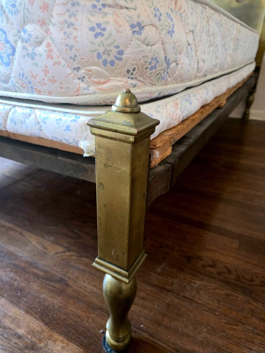 This is piece with a story! The story goes ... this bed was once in the White House and is photographed in the book "Backstairs." The original headboard was donated to make bullets in WWII. So now the original footboard is the headboard and the bed frame is made from railroad ties. The bed was sold to a man in New Jersey who eventually lost it in a poker game to the grandfather of our client in Oklahoma.