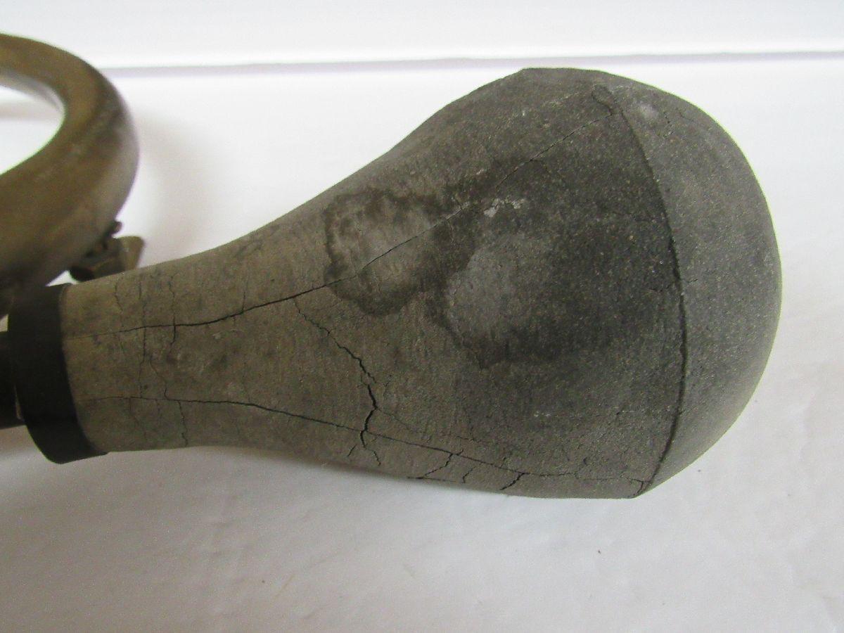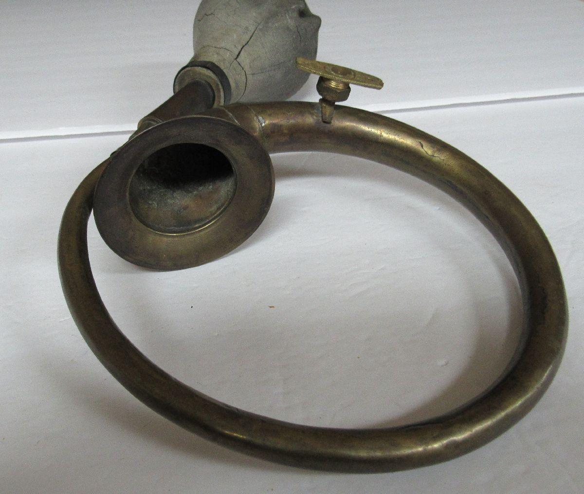 The brass section is quite nice with good patina. The bulb is all dried out and cracked. Shipping is available at shipping cost plus $5.00 handling fee on one box, $10.00 handling fee on two boxes, $15.00 handling fee on 3 boxes. Helps cover shipping materials and labor cost.