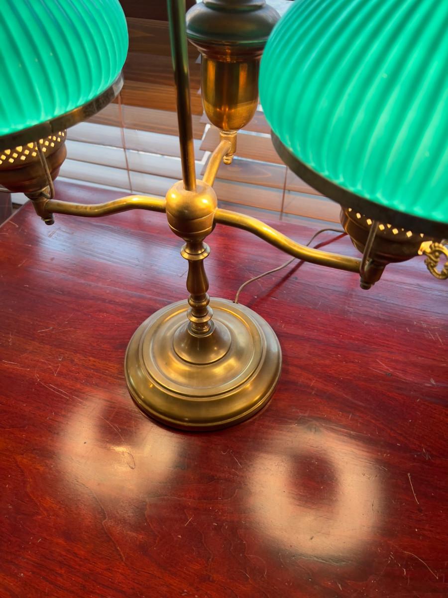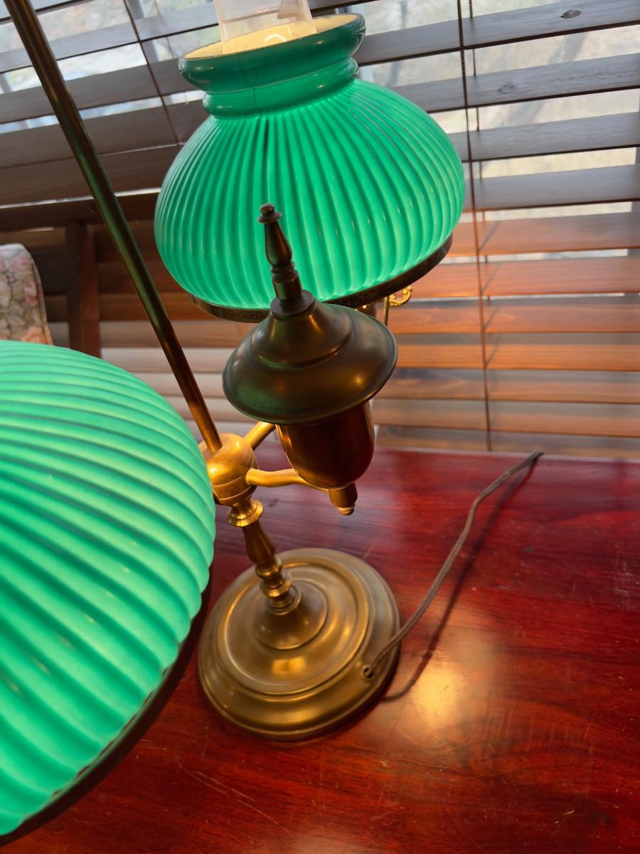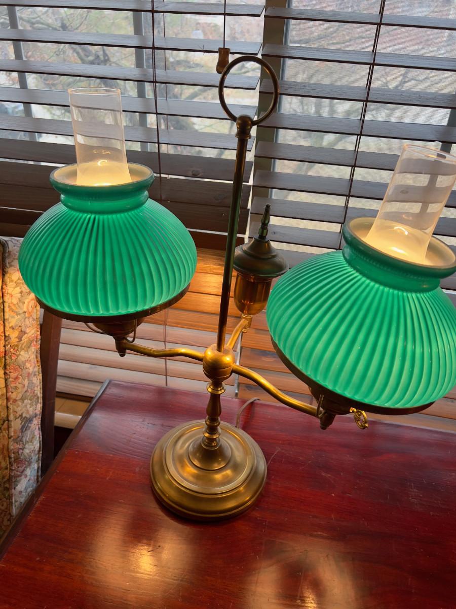 Antique Brass Desk Lamp with Green Shades