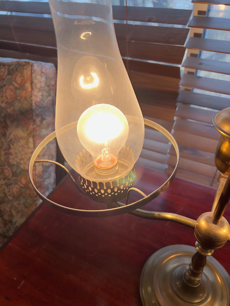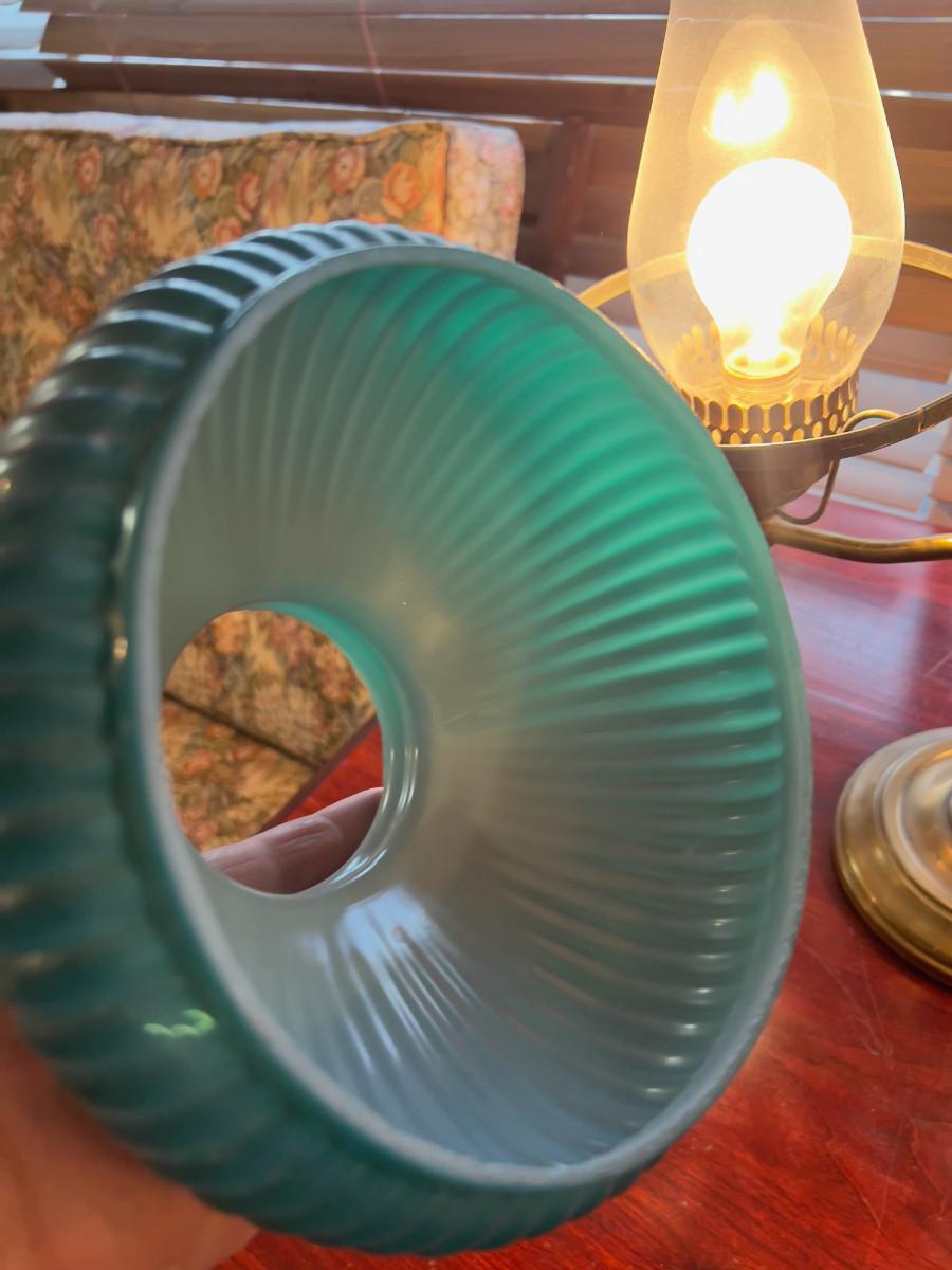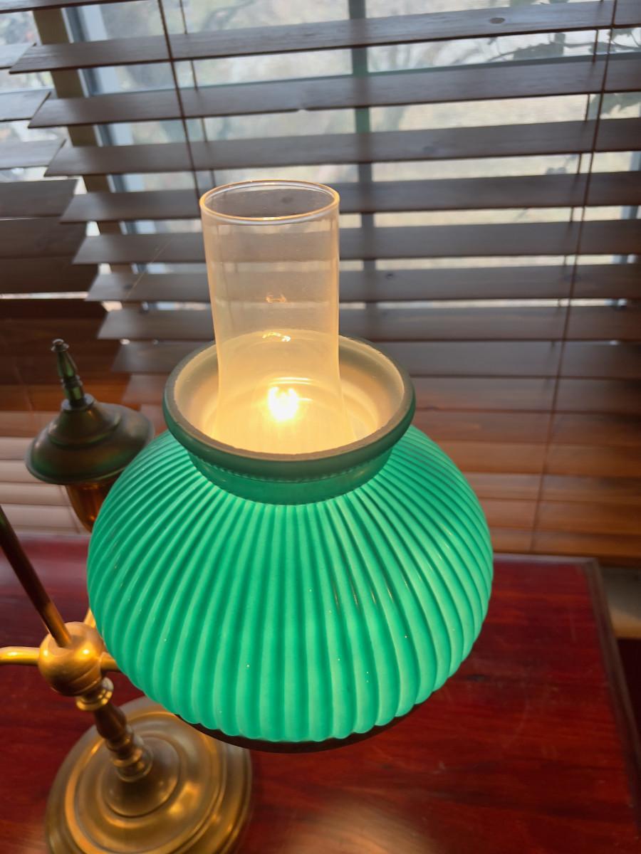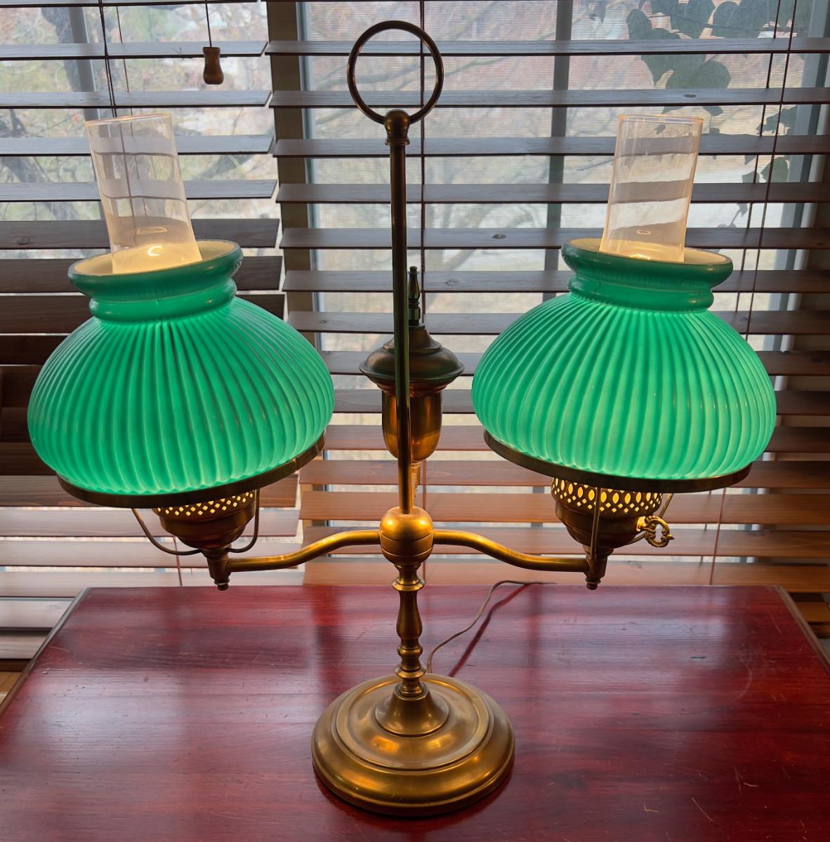 Antique Brass Desk Lamp with Green Shades