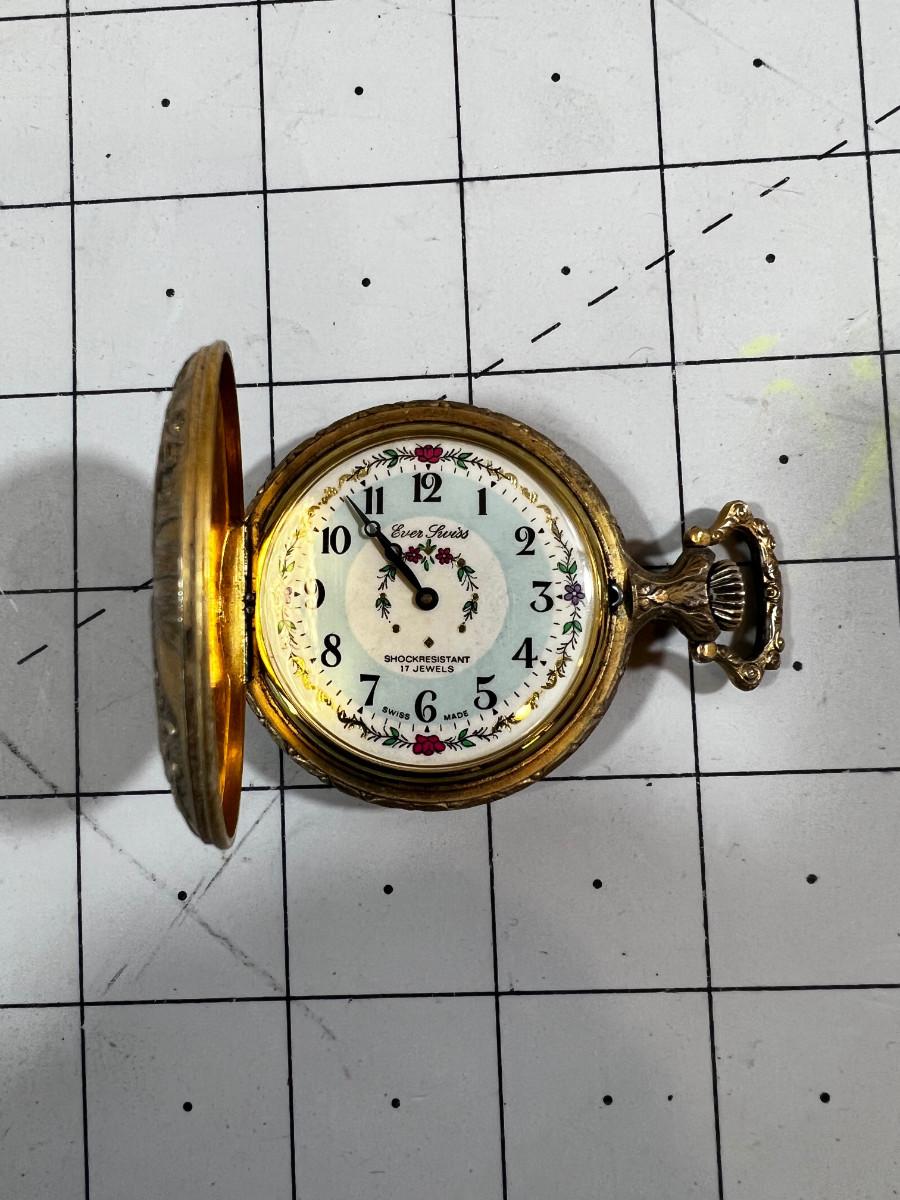 Antique Brass Enamel Face Pocket Watch, Swiss Made