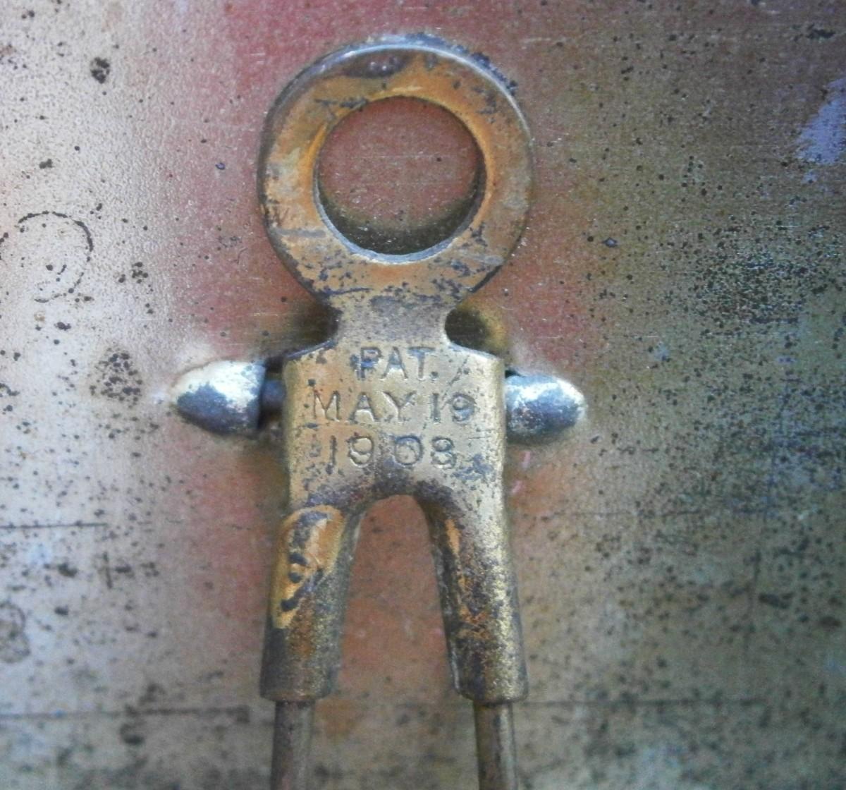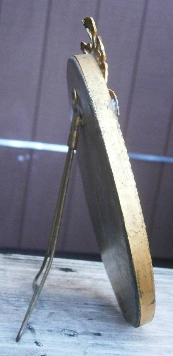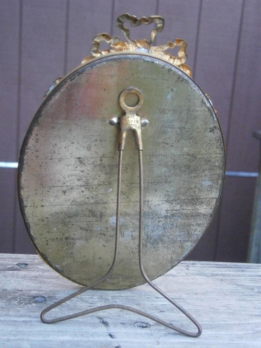 Antique Brass Frame Pat. 1908 by M.W. Carr & Co., Boston, Mass., 6 1/4 in. tall, brass with glass & tin back.