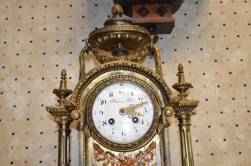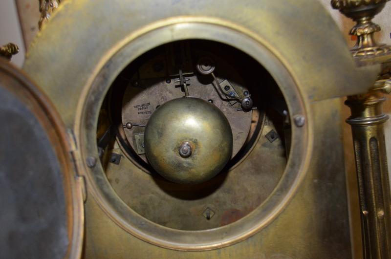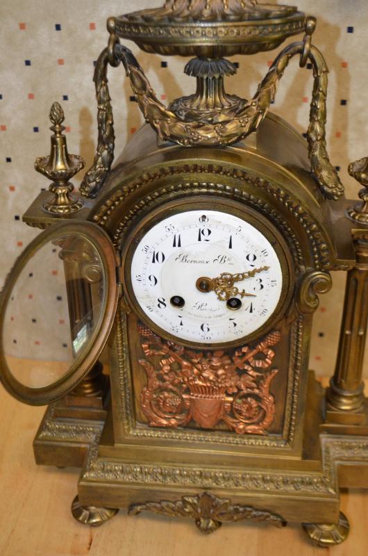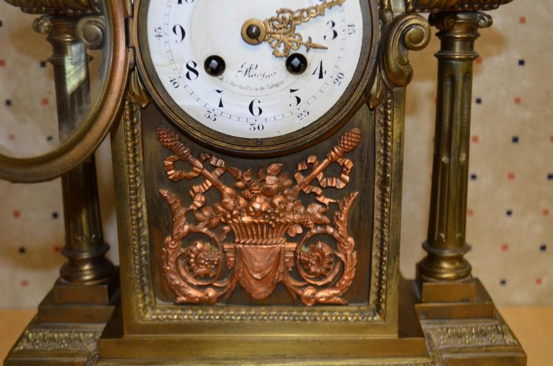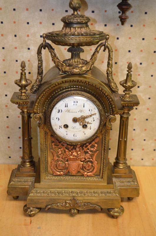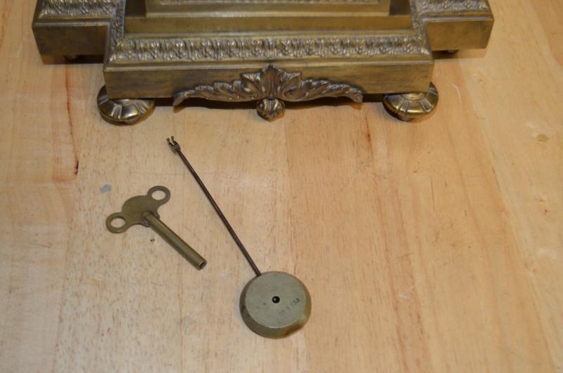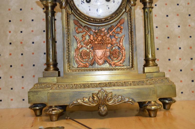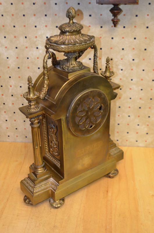 Antique Brass French Mantle Clock 19" Tall works good 19th century