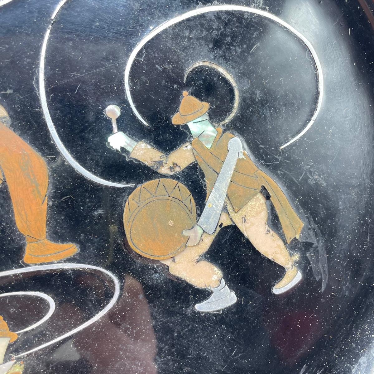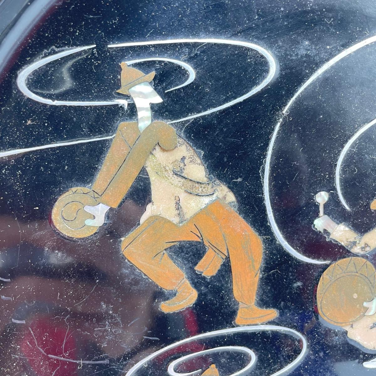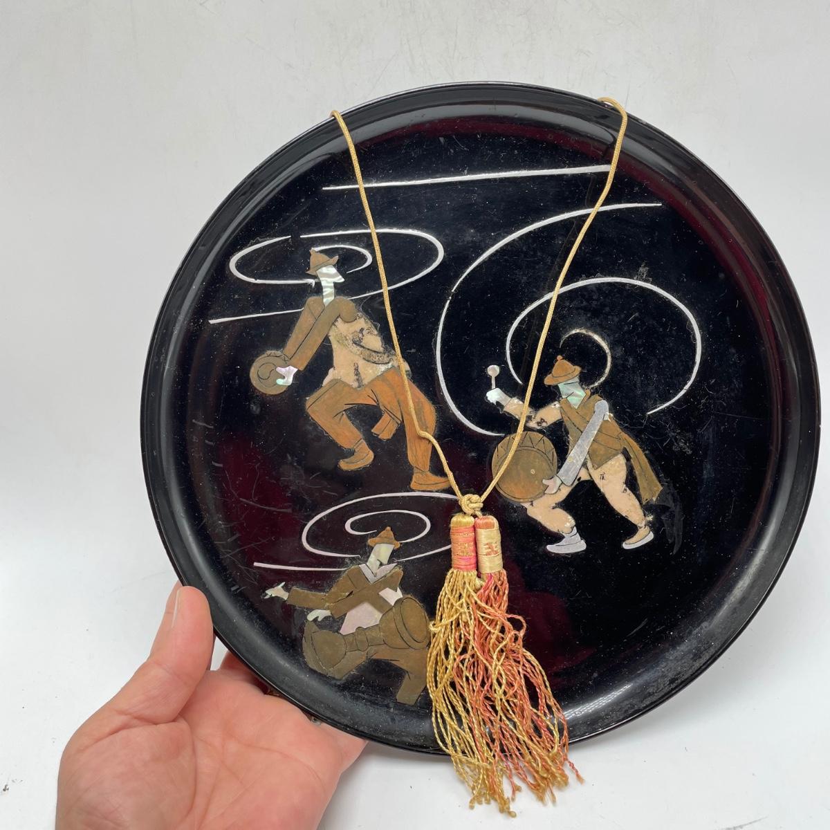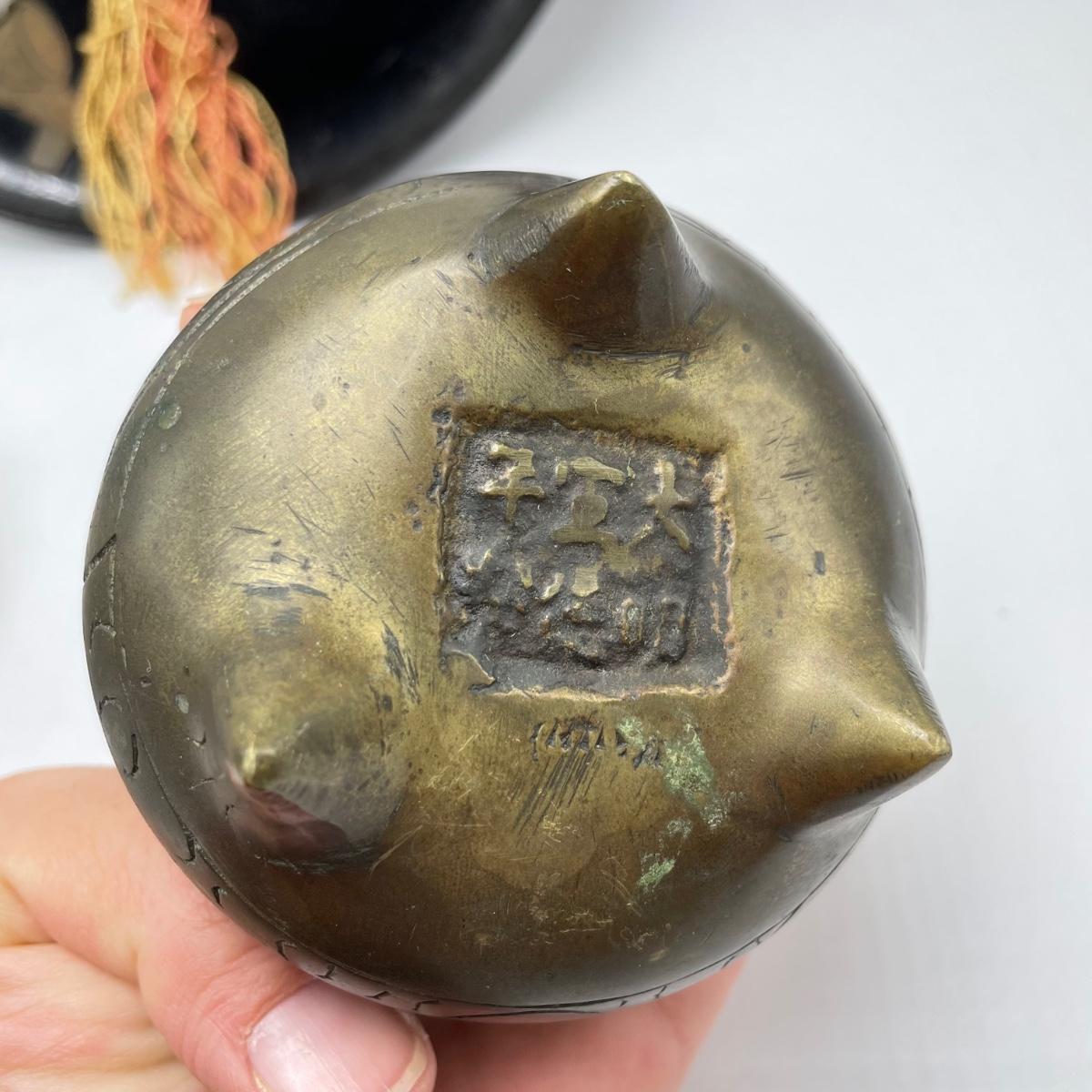 East Asian inspired decor including two beautiful pottery pieces, an antique brass incense burner a Melamine plate with metal and shell designs, a simple wallet and two cast iron birds. The birds have felt bottoms and they appear to be hollow. The melamine plate has unique and intricate designs with metal and shell inlay. The tallest character on the plate is missing his shirt, the middle character is missing a sleeve, his pants and part of the swirl. The lowest character is fully clothed, but his sleeves are separating. See images. Shipping available.