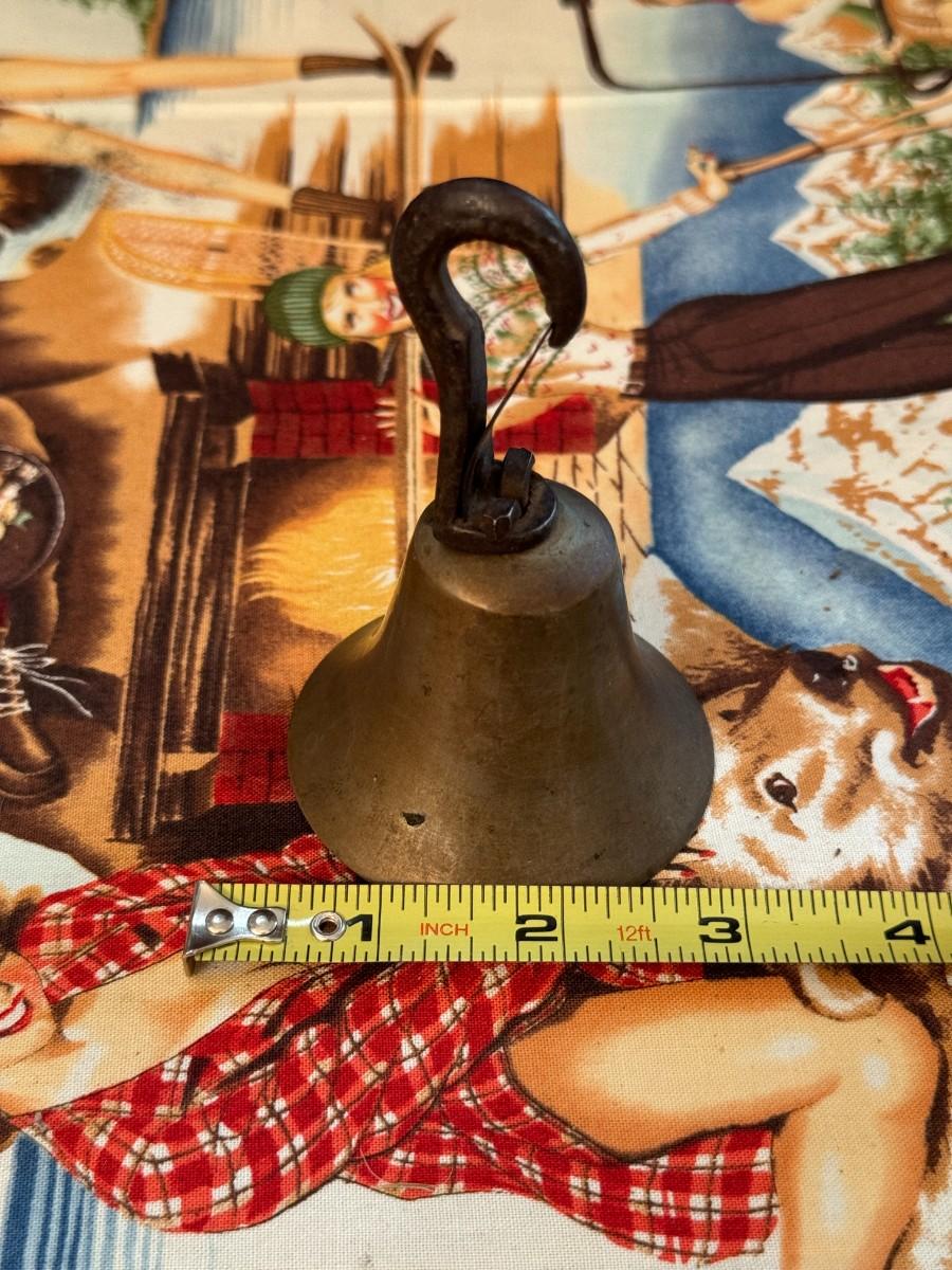 Nice antique brass overhead door bell 3" x 4" . Pleasing sound, no cracks