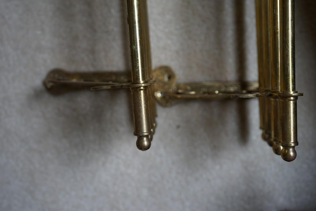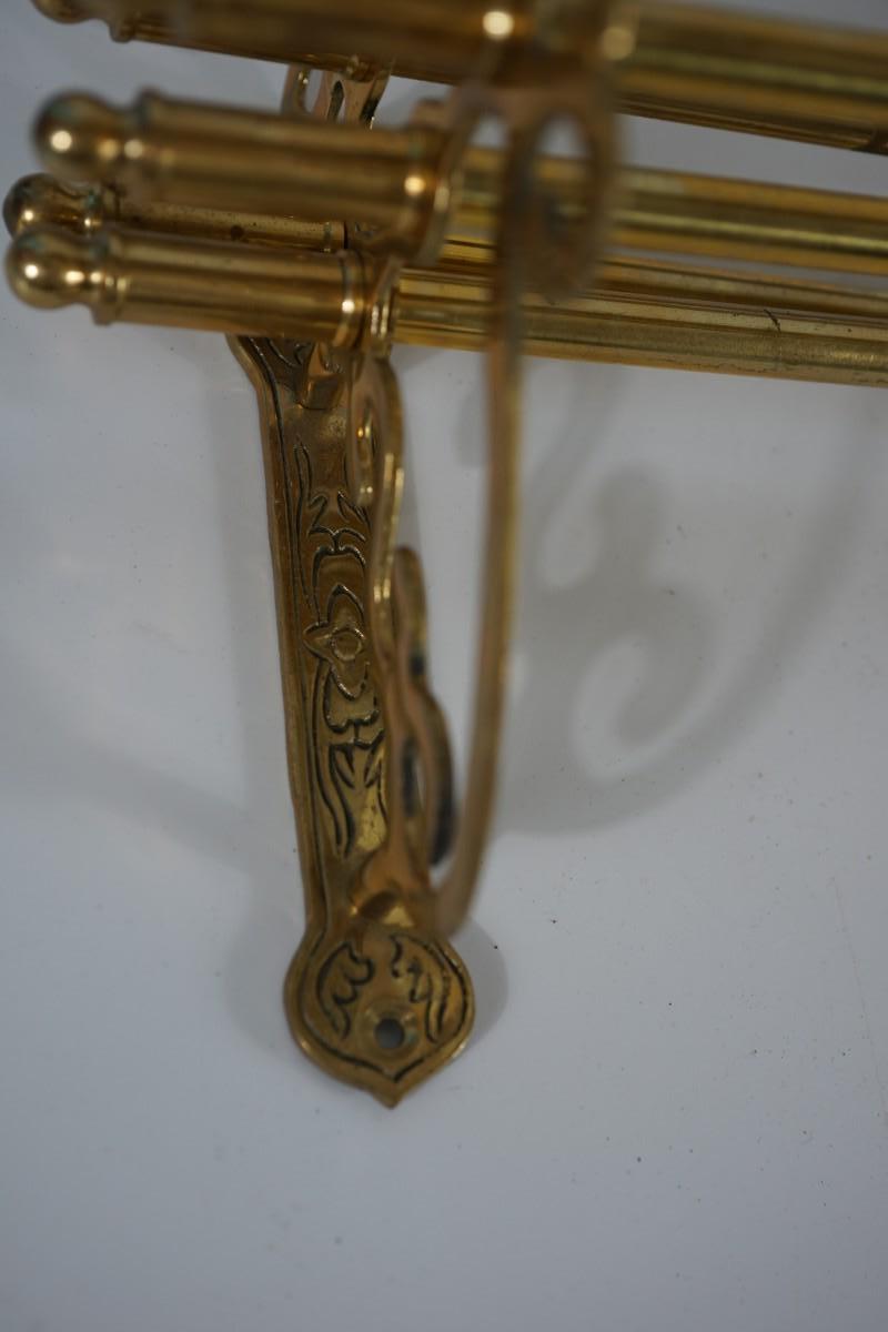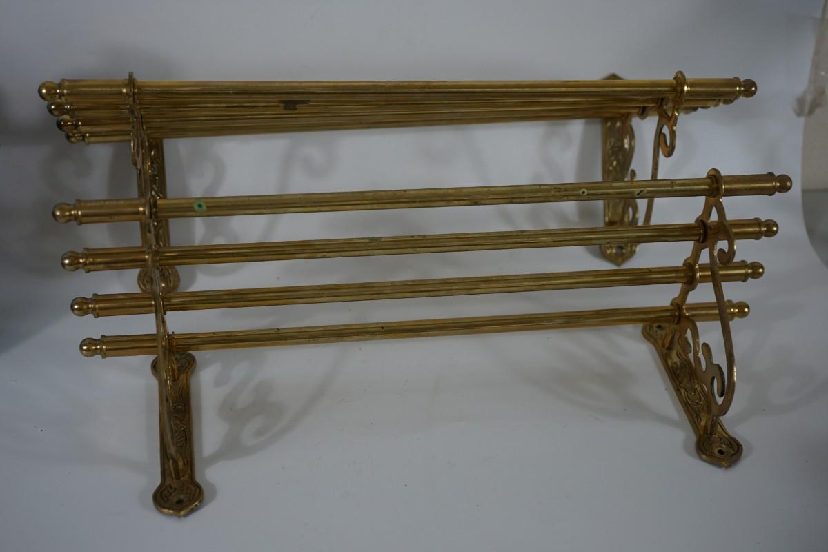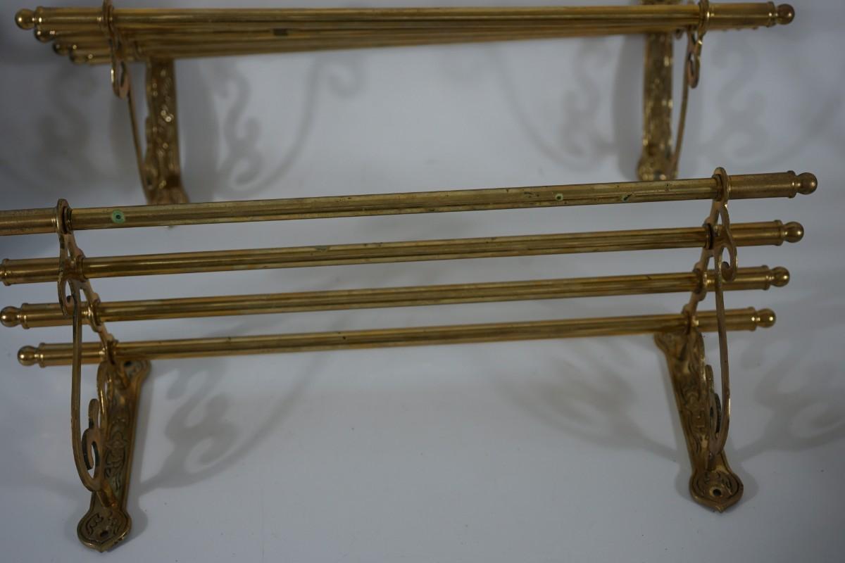 a pair of brass shelves. Towel bards of four, the backs are a pressed Victorian