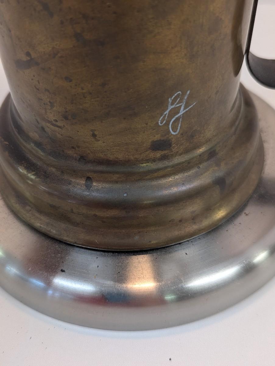 Antique Signed Brass Torch Lamp With Wooden Handle Welding Soldering Gas Tool