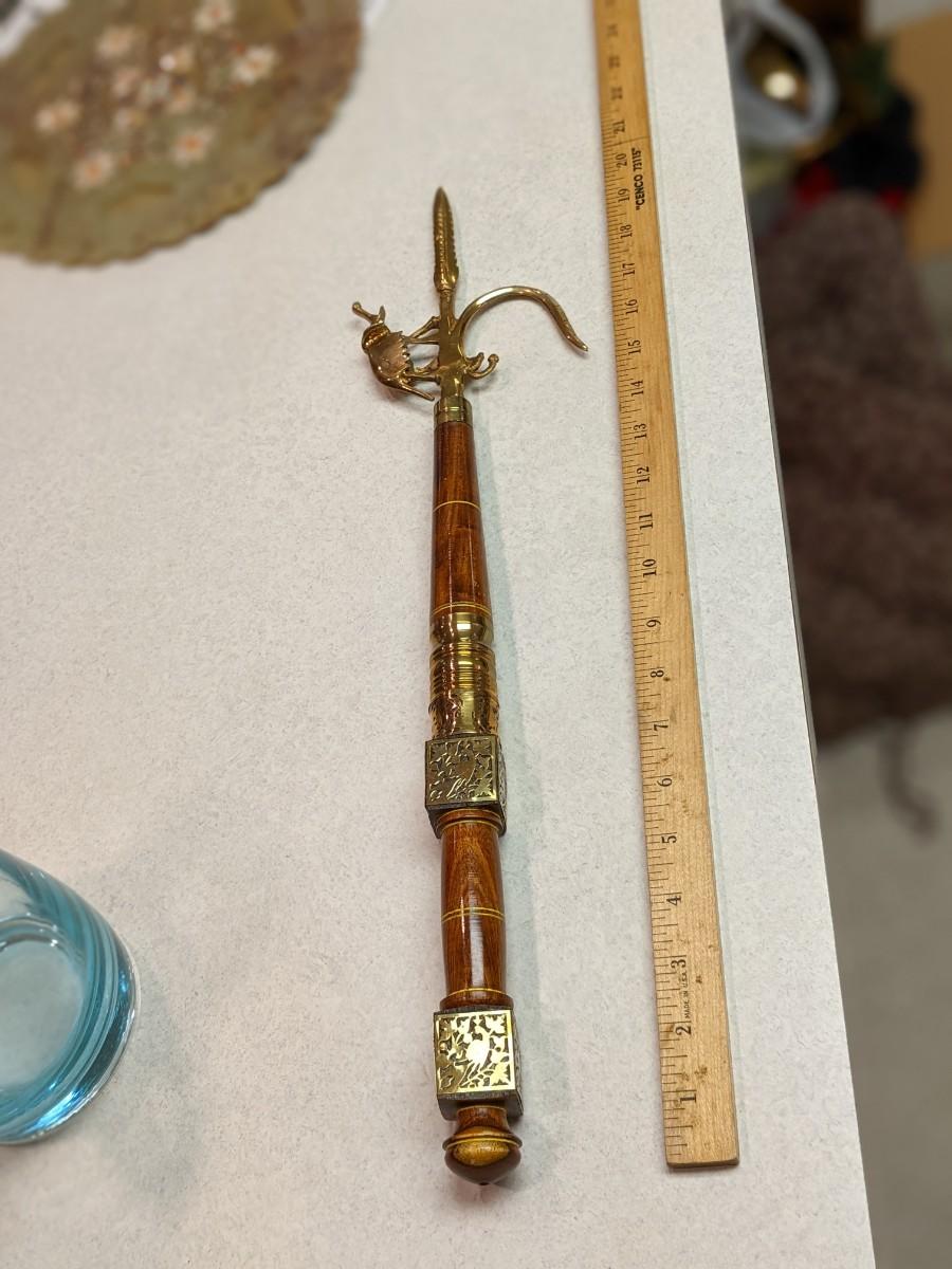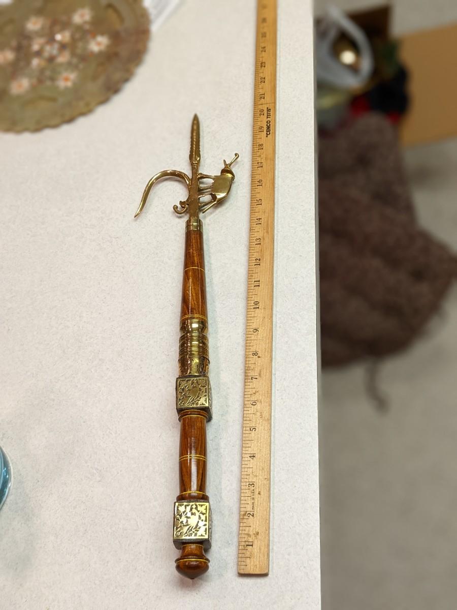 Antique Brass Wood Ankush Ankus Elephant Mahout Hook