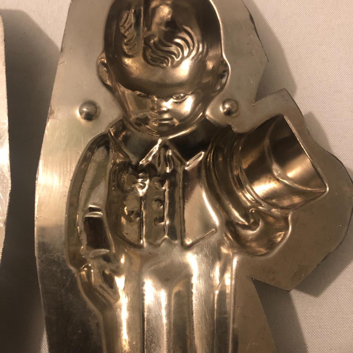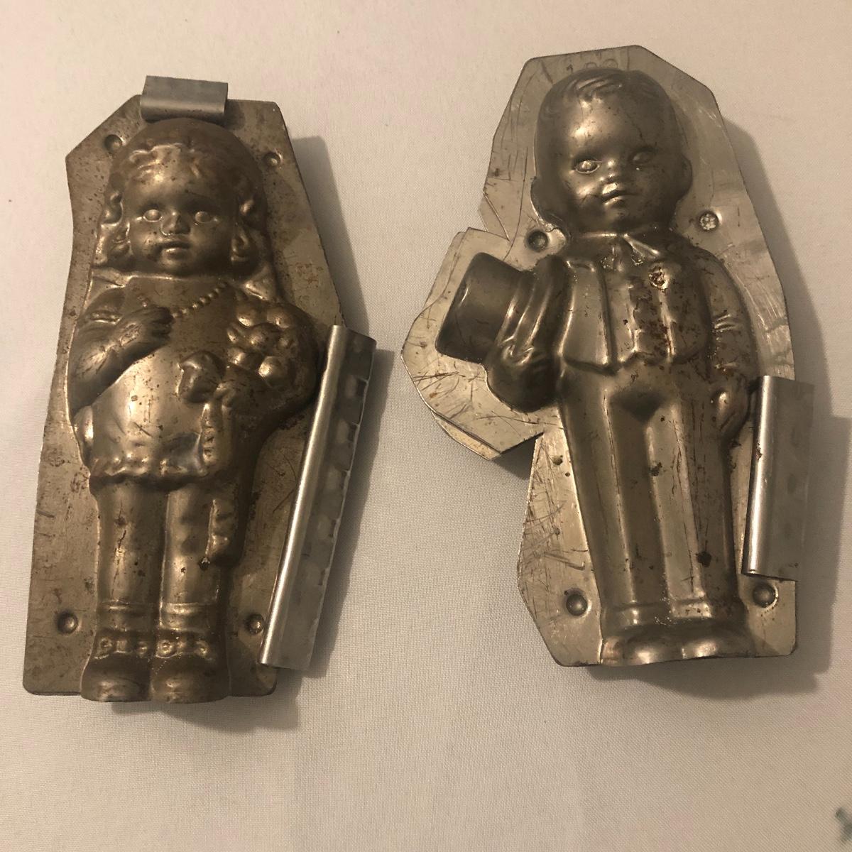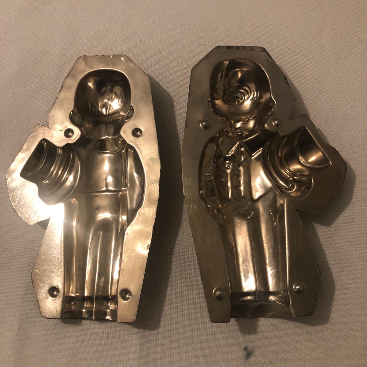 The metal molds are of a boy and girl in wedding dress and tuxedo. Both are about 7.5” tall. Shipping Available.