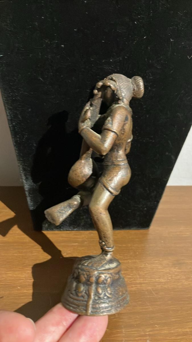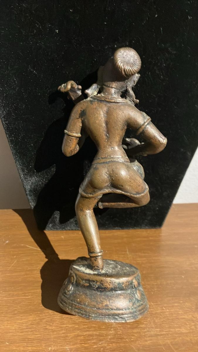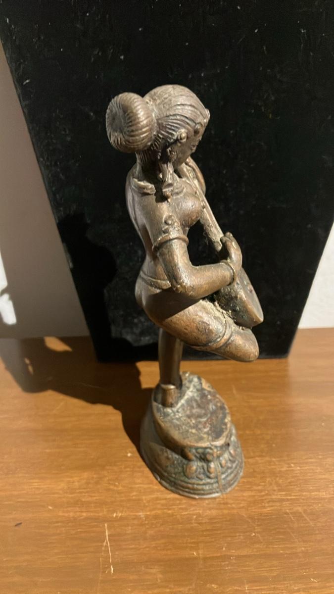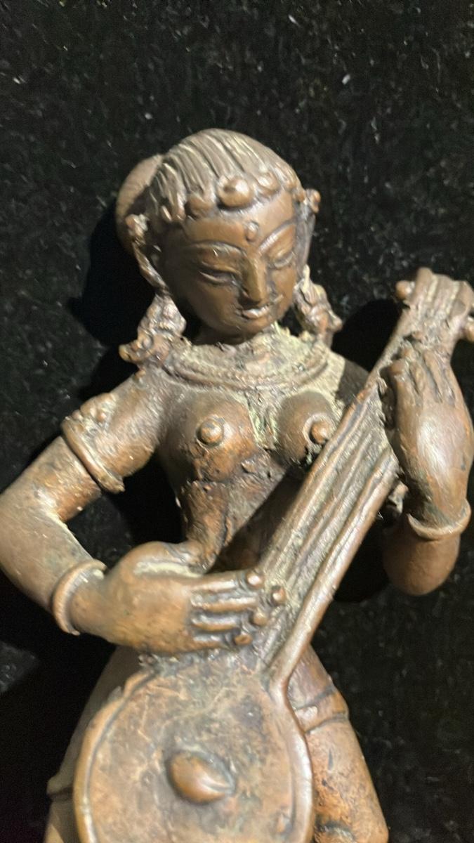 Antique Bronze Dancing Saraswati Statue - Hindu Goddess Playing Veena - 6" Tall