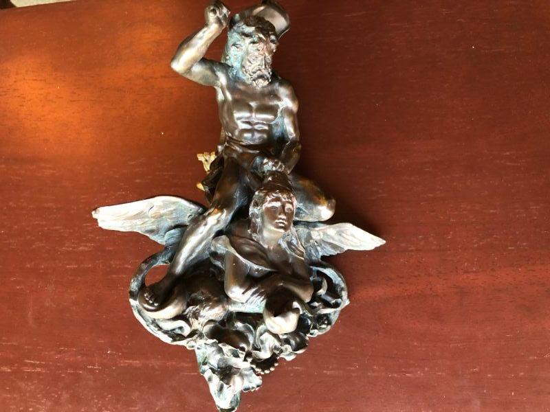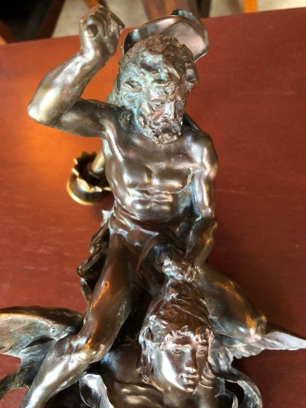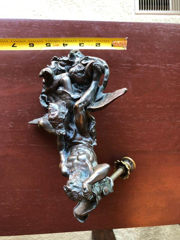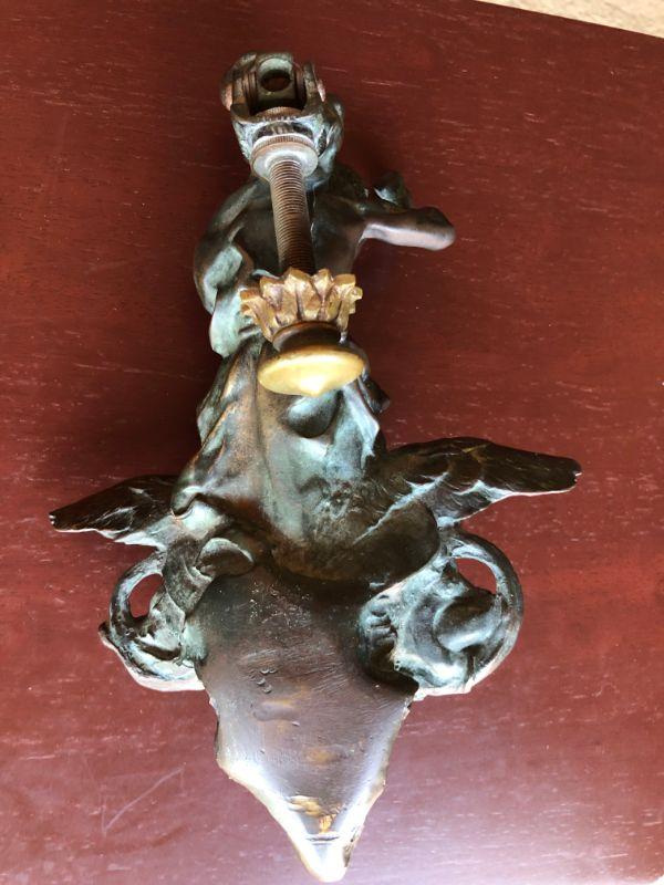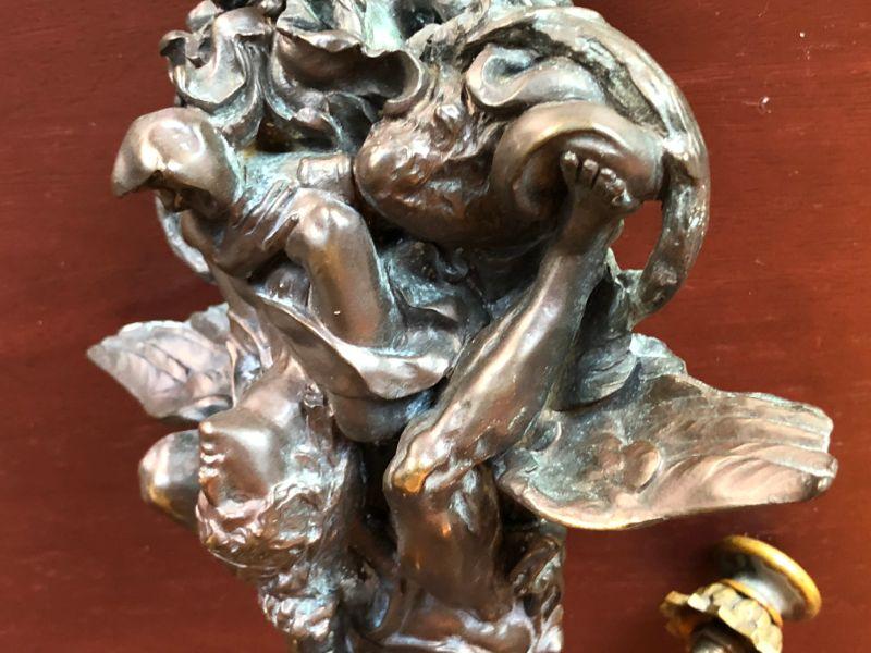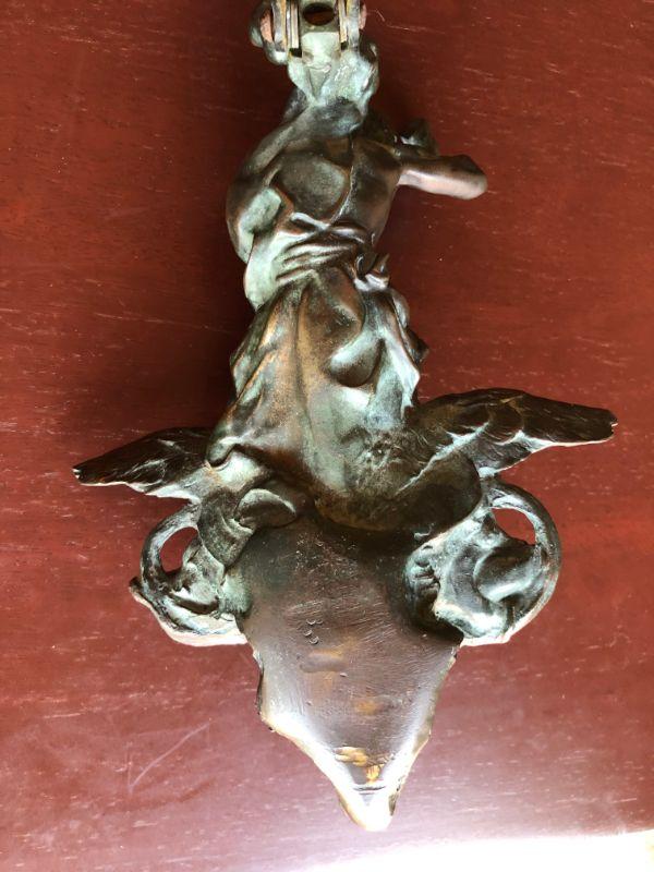 Antique Bronze Door Knocker Mythological Scene of Man with Hammer and Angel