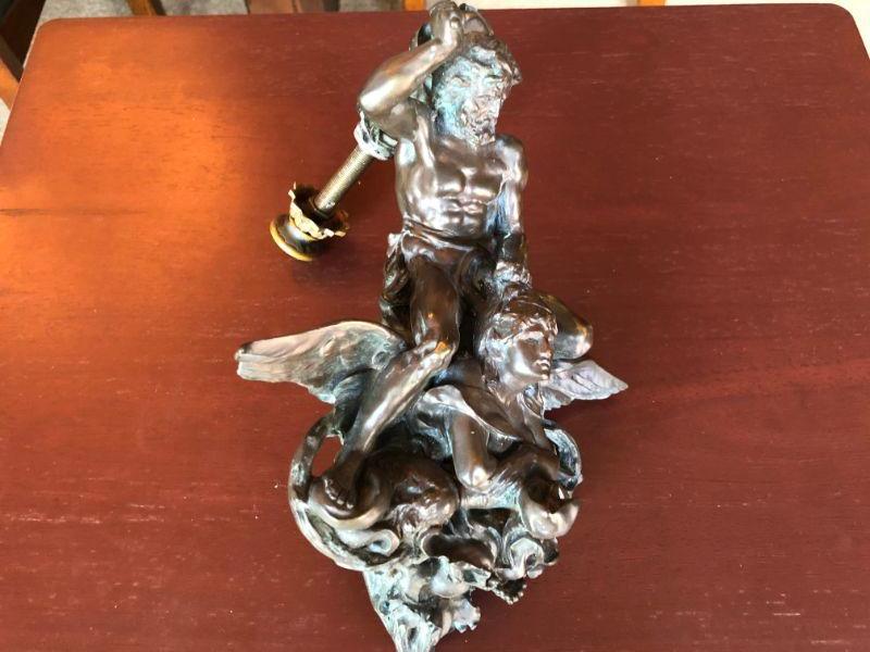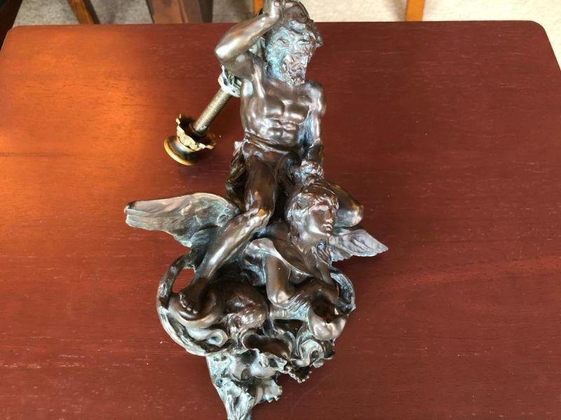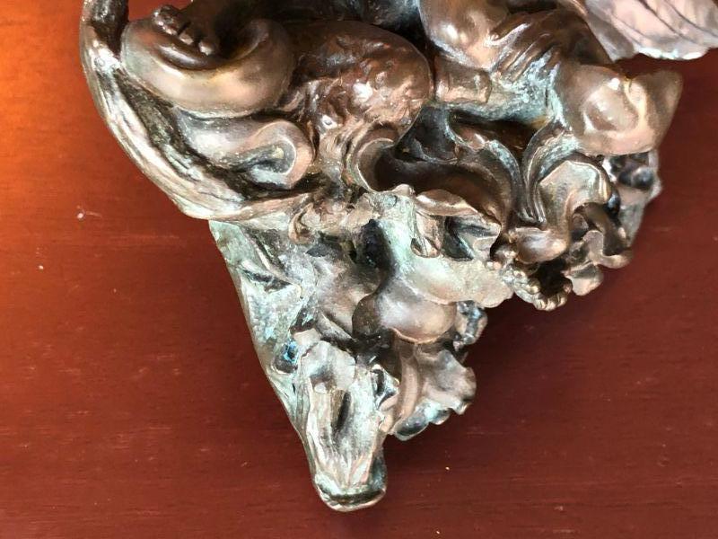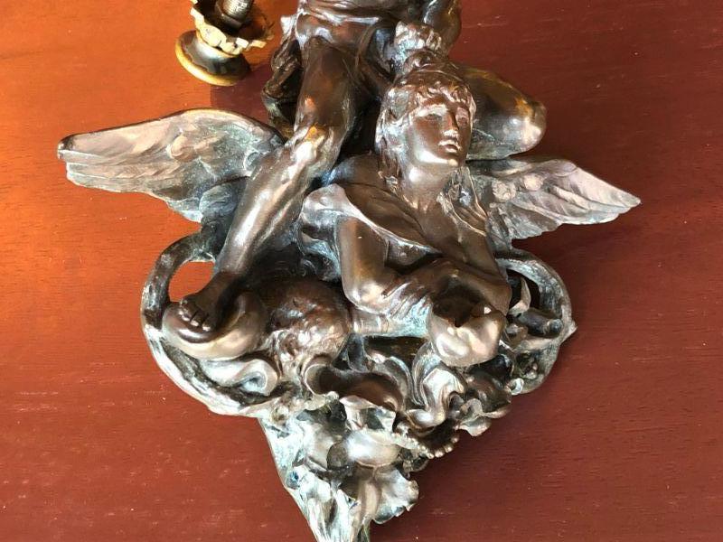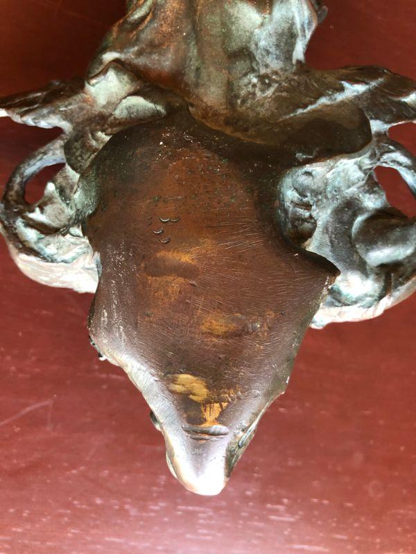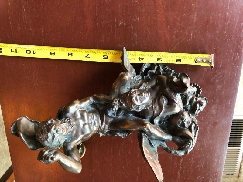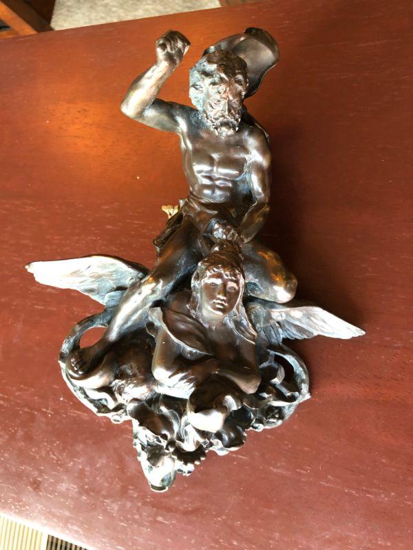 Antique Bronze Door Knocker Mythological Scene of Man with Hammer and Angel