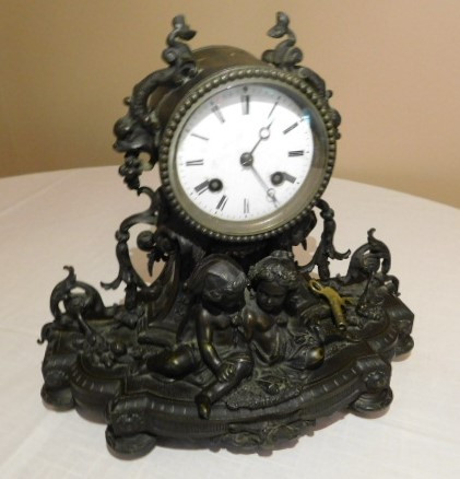 Antique Bronze French Roccoco Mantle Clock with Key 12"x10"