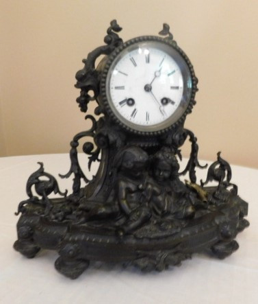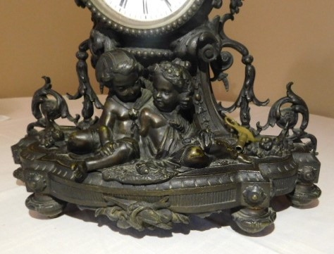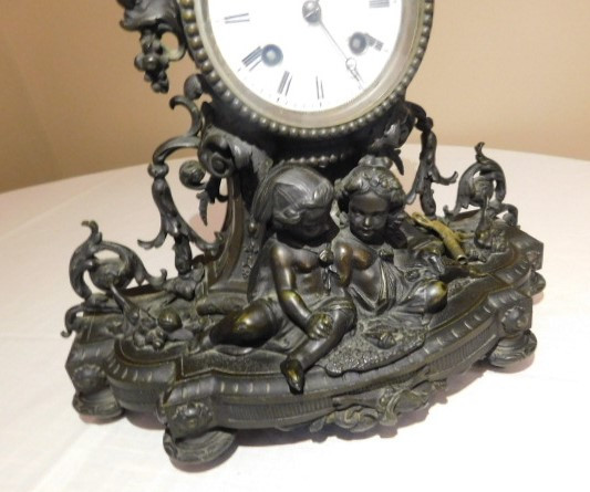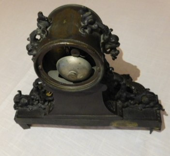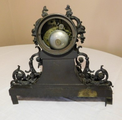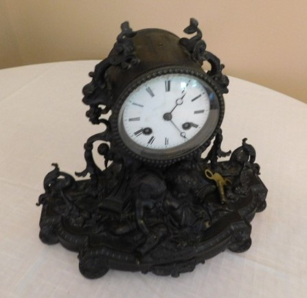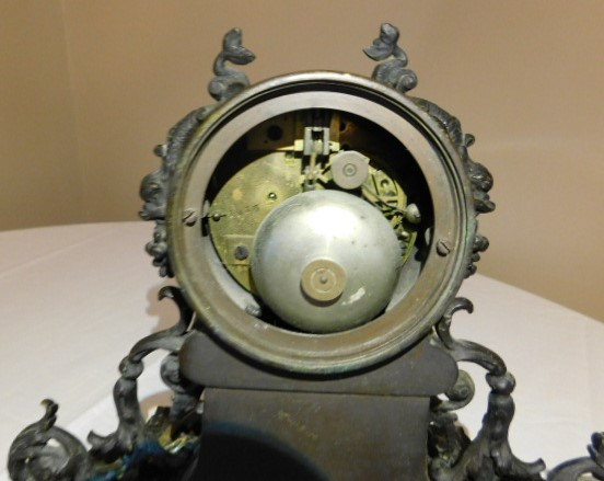 Bronze French Roccoco Mantle Clock with Key 12"x10" back is missing in working condition