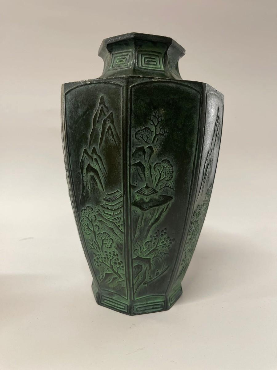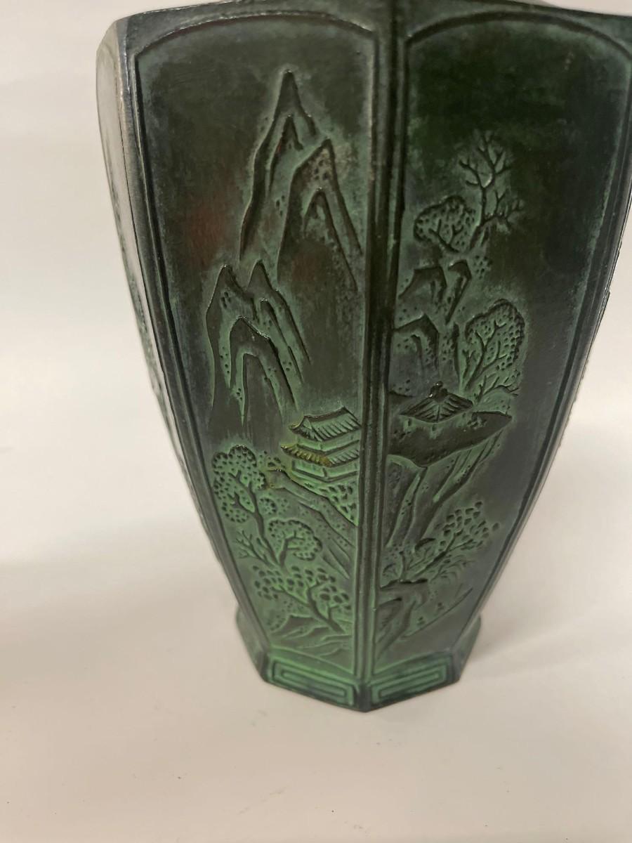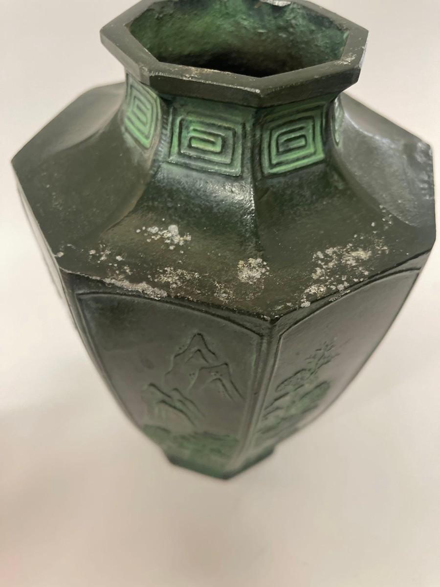 Antique Metal Octagonal Vase