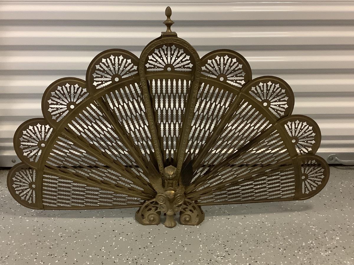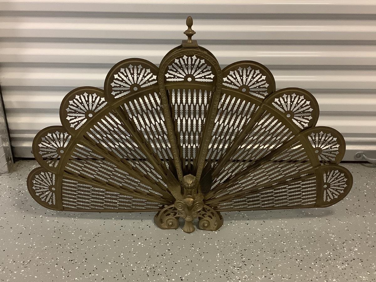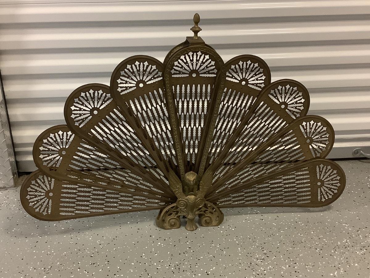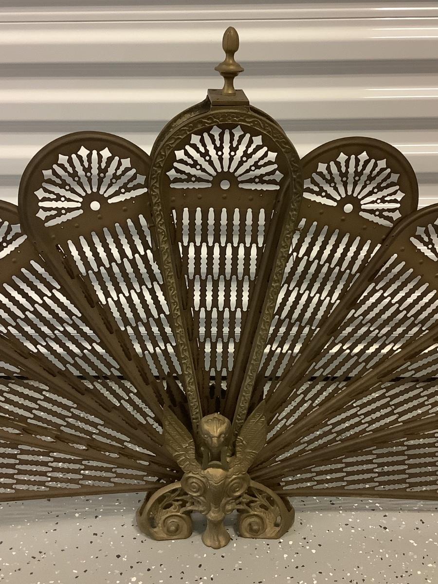 Antique Bronze Peacock Gargoyle Griffin Fan Screen for the fireplace 25"H  37"W
