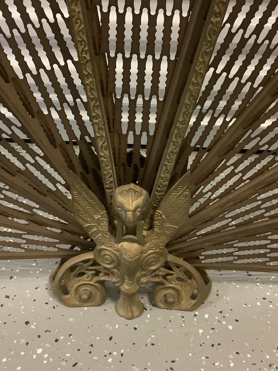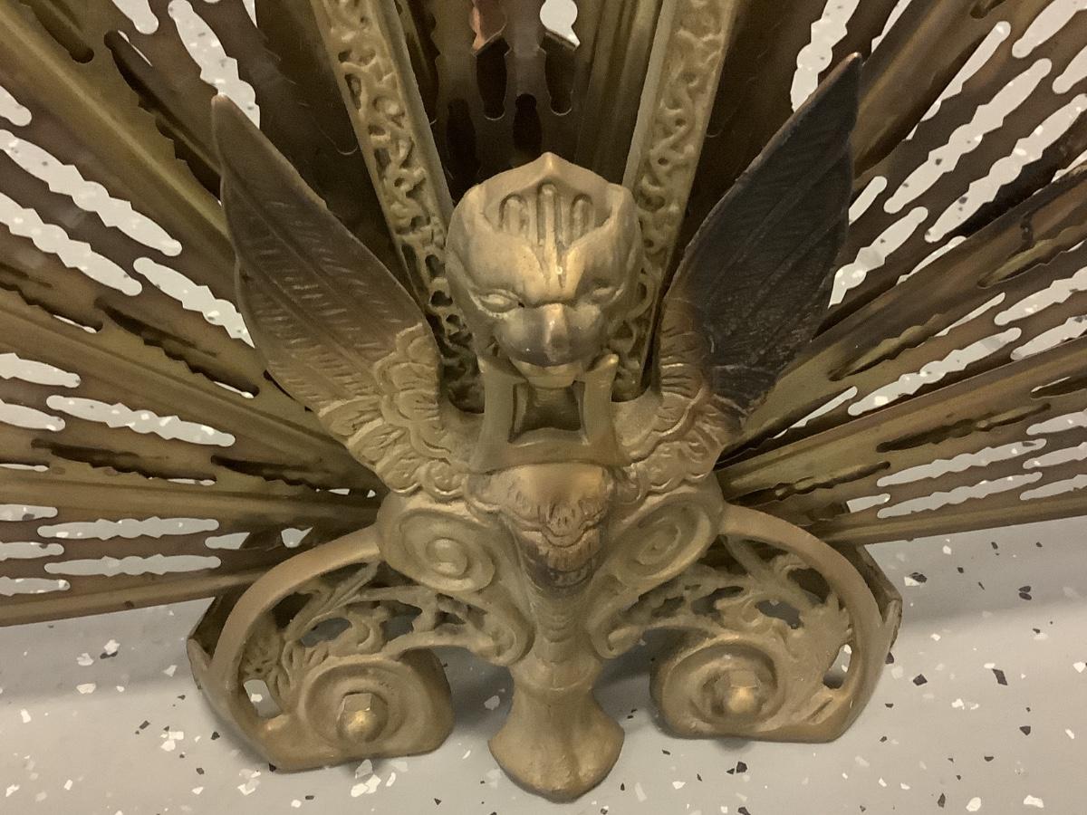 Antique Bronze Peacock Gargoyle Griffin Fan Screen for the fireplace 25"H 37"W