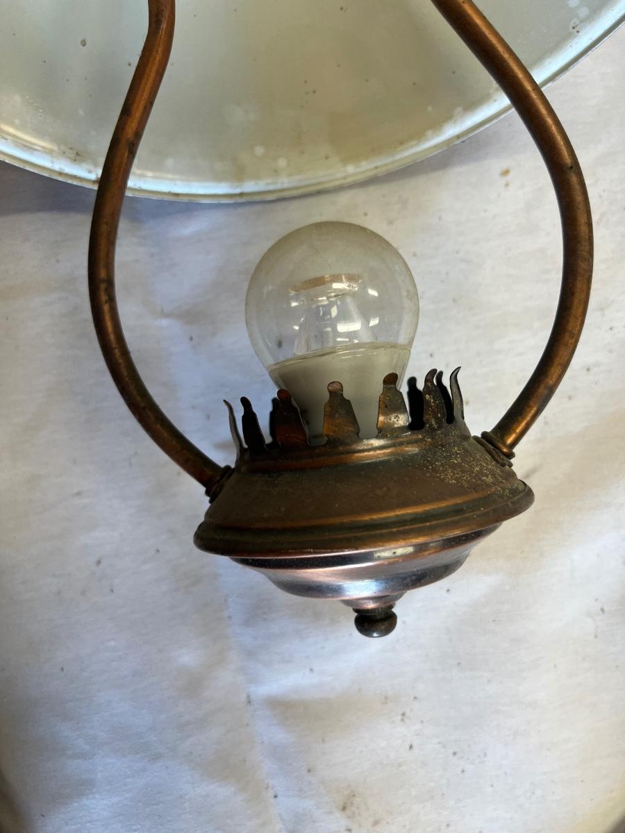 11” diameter antique hanging lamp. Great vintage condition with no dents or dings
