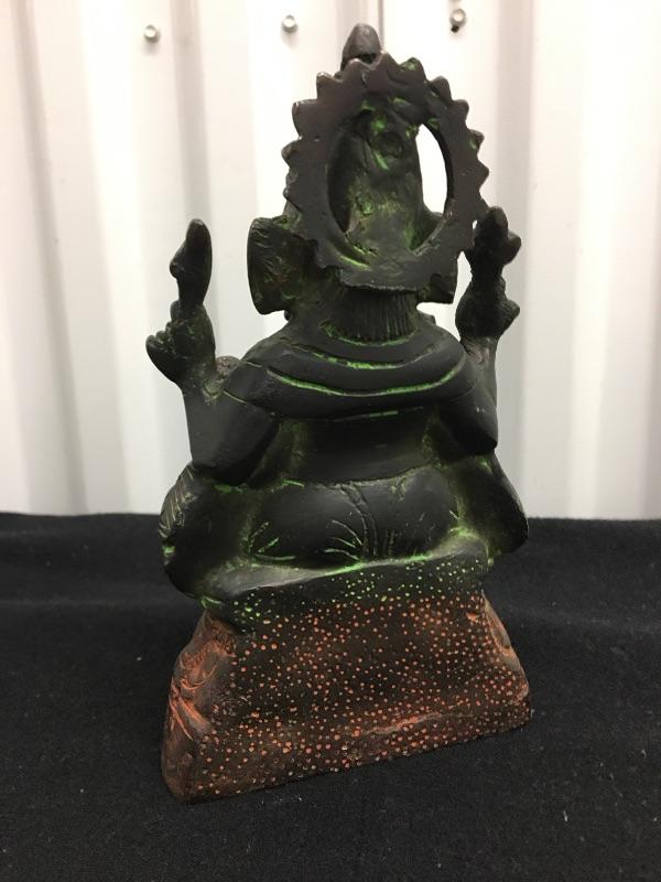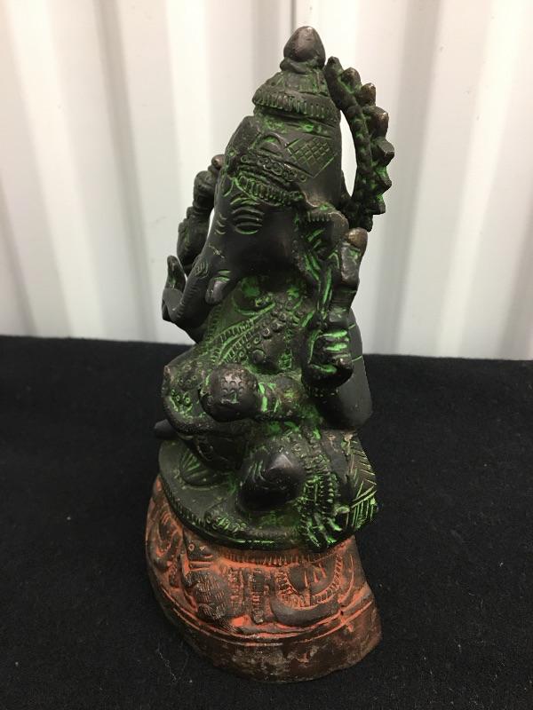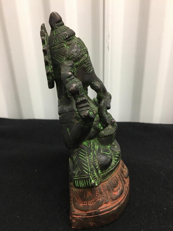 Antique Bronzed Painted Metal Hindu Elephant God Statue 8”