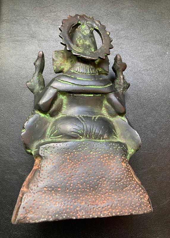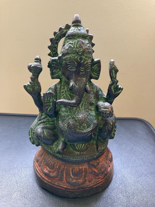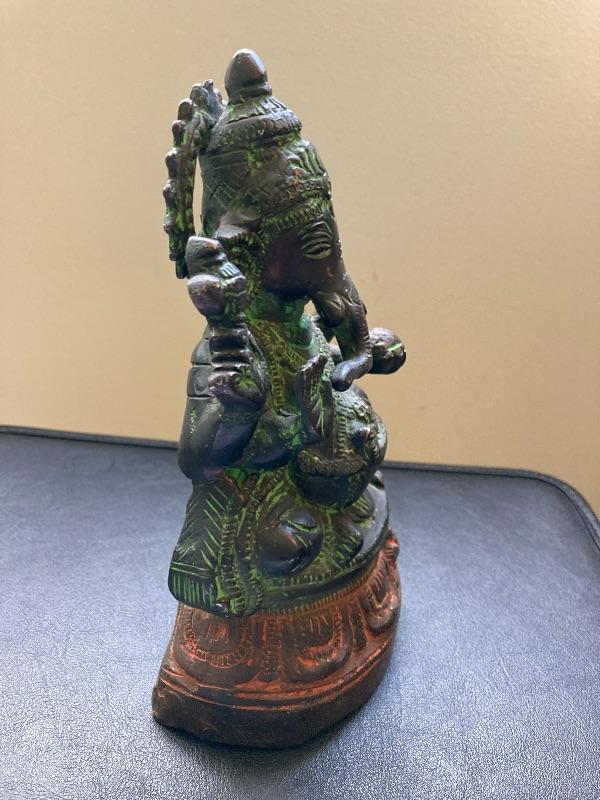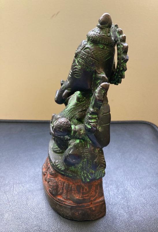 Antique Bronzed Painted Metal Hindu Elephant God Statue 8”